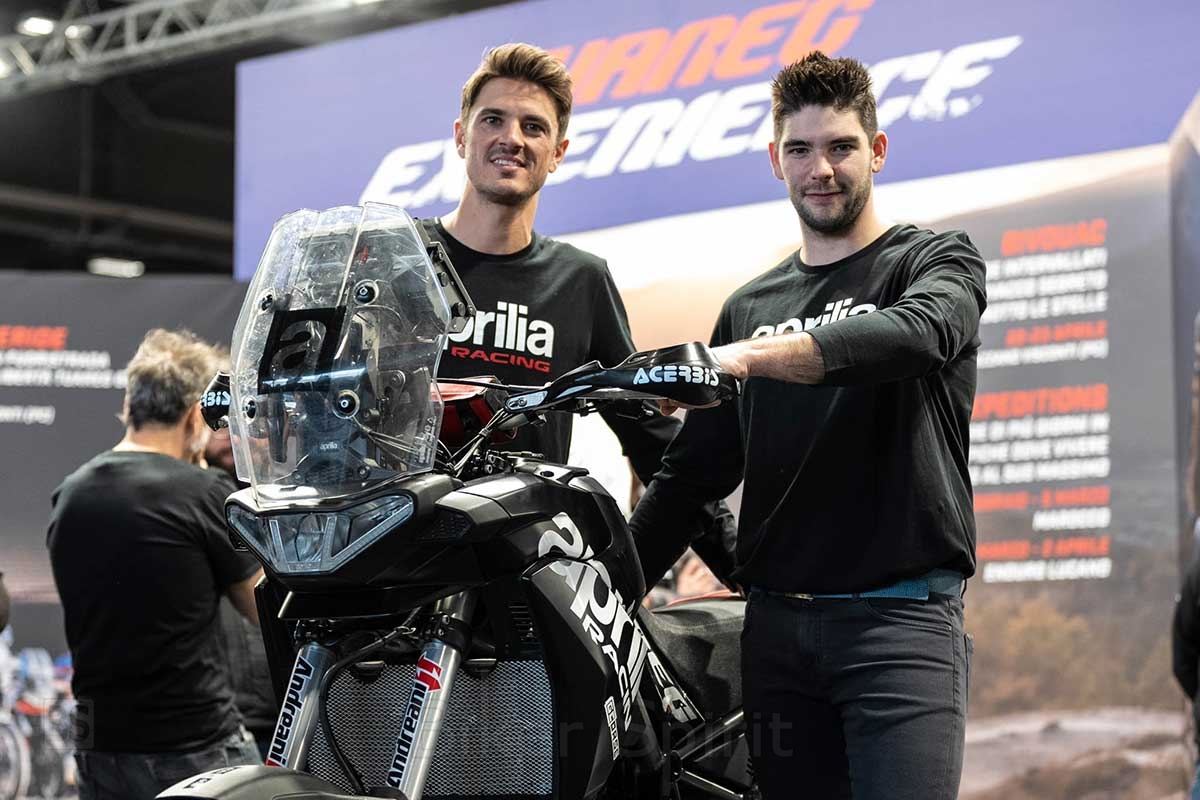Το Aprilia Tuareg project θα επιβλέπεται από τον γεννημένο το 1989 Jacopo Cerutti, ο οποίος φέρνει τη δική του εκτεταμένη εμπειρία στην ανάπτυξη της Aprilia Racing. Ο αναβάτης από το Κόμο έχει κατακτήσει πολλές νίκες στο Ιταλικό Motorally, καθώς και ένα πρωτάθλημα Ιταλίας και τέσσερα πρωταθλήματα Ευρώπης στο Enduro. Επίσης, έχει ήδη συμμετάσχει έξι φορές στο ράλι Dakar. Στο πλευρό του θα βρίσκεται ο Francesco Montanari, ο διεθνούς επιπέδου αγωνιζόμενος στο Enduro, ο οποίος είχε εξαιρετική απόδοση την προηγούμενη χρονιά, ως νεοεισερχόμενος στο Tricolore Motorally.