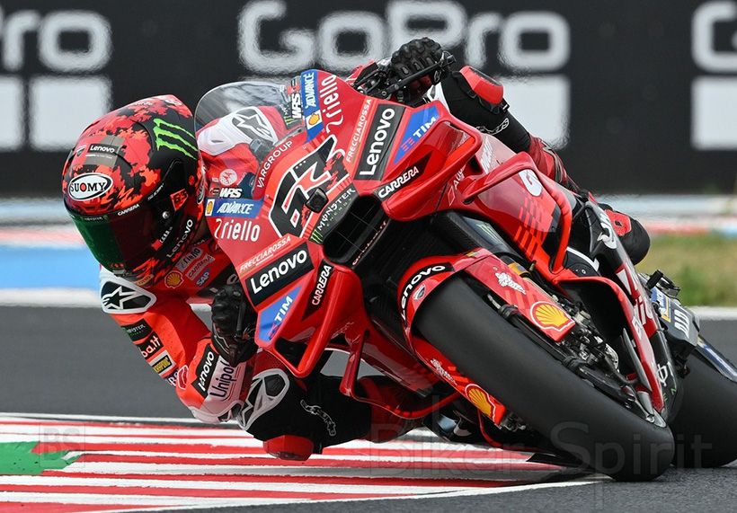 Σχετικά με την παρουσία άλλων Ducati μέσα στο Q2, ο Pecco τόνισε: «Όχι, αλλά πλέον δεν μπορεί να κρυφτεί το γεγονός ότι, ευτυχώς, ο Marc είναι ο μόνος που καταφέρνει να βγάζει το 100% από αυτή τη μοτοσυκλέτα. Κατά τ’ άλλα, οι GP24 είναι γενικά πολύ καλές μοτοσυκλέτες. Εγώ όμως εδώ δυσκολεύομαι πάρα πολύ».