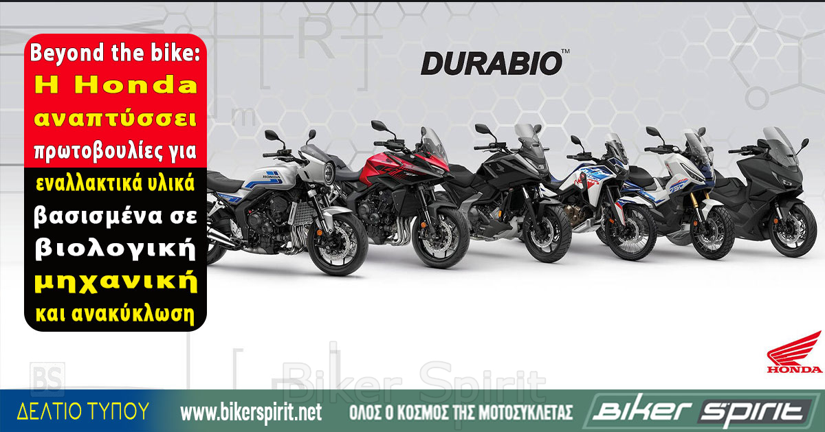 Η ενσωμάτωση του DURABIO™ στη σειρά μοτοσυκλετών της Honda αντικατοπτρίζει την αποστολή της να προσφέρει «χαρά και ελευθερία στη μετακίνηση», μειώνοντας παράλληλα το περιβαλλοντικό της αποτύπωμα.