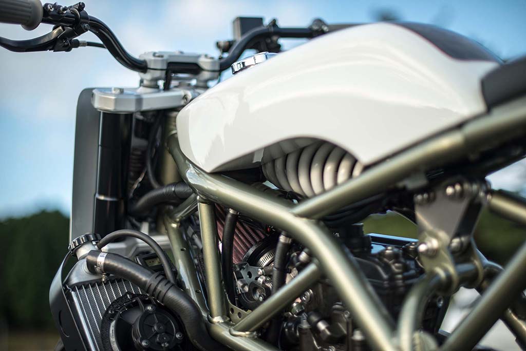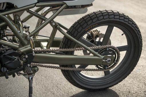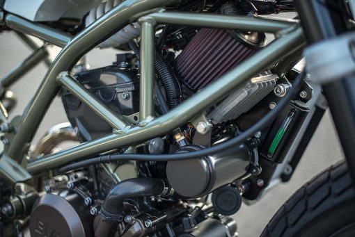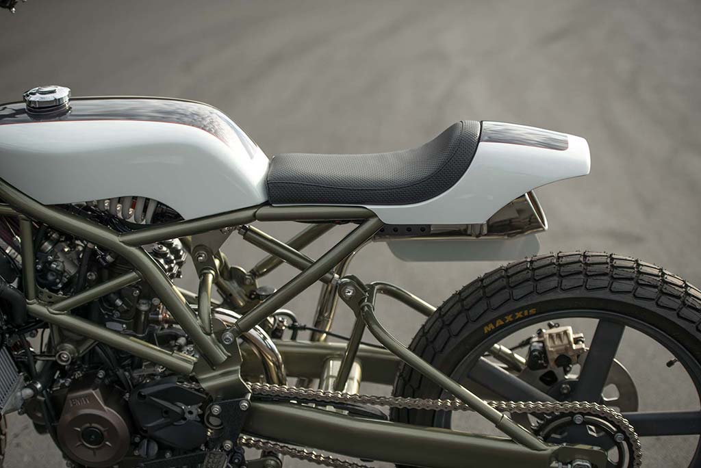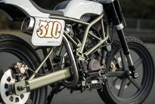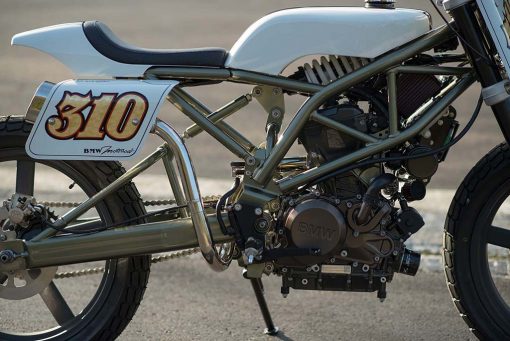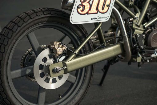 Κρατώντας το πλαίσιο του G310R, όπως δήλωσε ο ίδιος για να κρατήσει ένα μεγάλο ποσοστό την αυθεντικότητα της μοτοσυκλέτα, άλλαξε το υποπλαίσιο, το ψαλίδι, την ανάρτηση, το ντεπόζιτο, την ουρά και τη σέλα.
