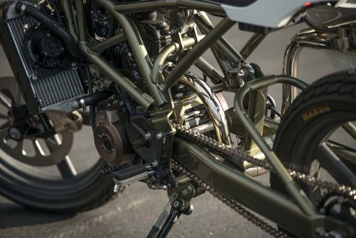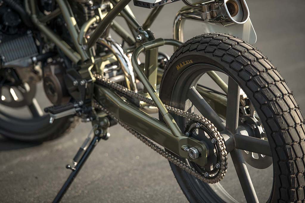 Το πλαίσιο έχει αλλάξει σε ένα πράσινο-χρυσάφι χρώμα, ενώ μπροστά έχει ένα μεγάλο number plate και ακριβώς από κάτω ένα μικρό φωτιστικό LED, όπως και πισω κατω από την σελα εχει ένα μικρό κόκκινο LED!