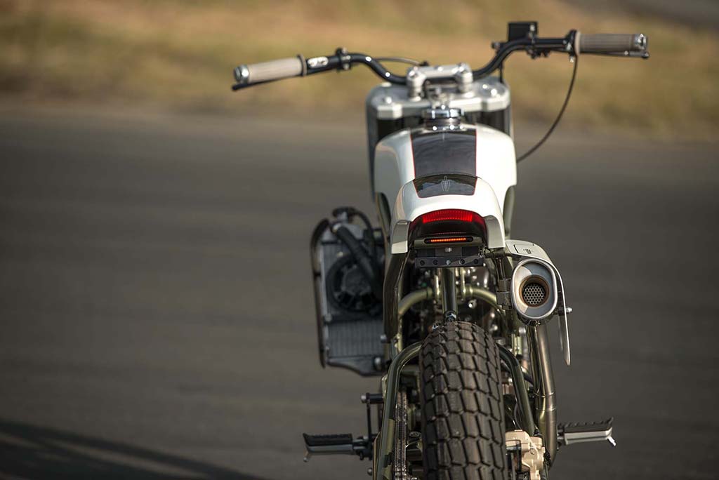 Η εξάτμιση είναι χειροποίητη και είναι πράγματι πανέμορφη, ανεβαίνοντας ψηλά από το πλάι και καταλήγει πίσω από ένα μεγάλο number plate!