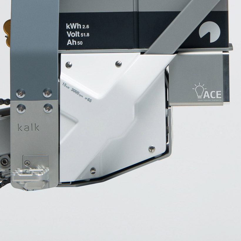 Το όνομα «Kalk» προέρχεται από τη σουηδική λέξη που σημαίνει «ασβεστόλιθος». Ο κινητήρας IPM κατασκευάζεται στην Ευρώπη έχει απόδοση 15 Kw (περίπου 20 hp) και ροπή 42 Nm που τροφοδοτείται από μια μπαταρία 51,8 volt και 50 Ah, όλα διαχειρίζονται από το δικό του λογισμικό και ζυγίζει μόνο 70 κιλά .