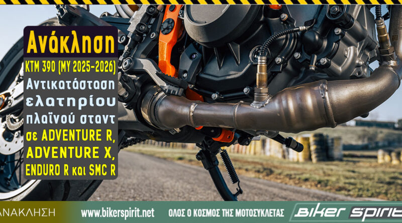 Ανάκληση KTM 390 (MY 2025–2026): Αντικατάσταση ελατηρίου πλαϊνού σταντ σε ADVENTURE R, ADVENTURE X, ENDURO R και SMC R