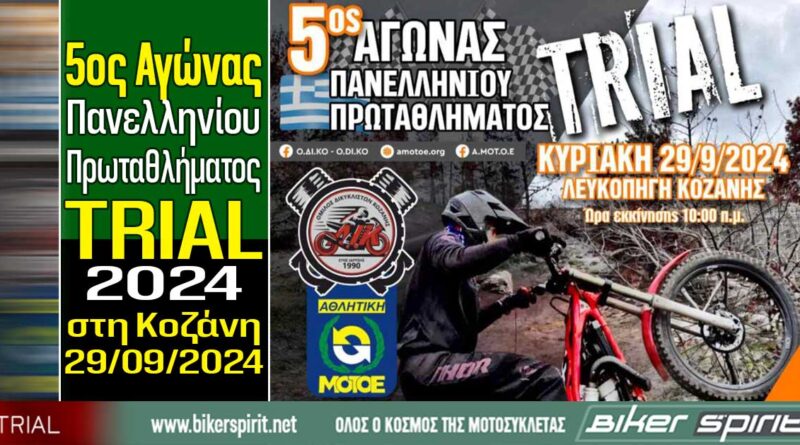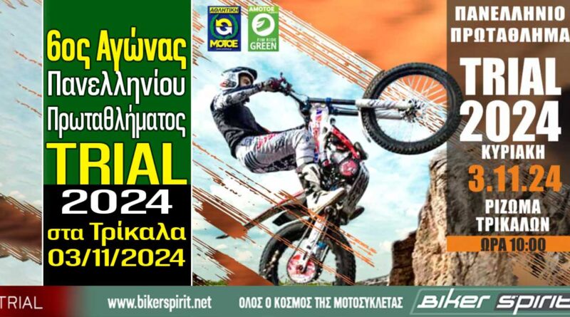 Παν. Πρωτ. Trial 2024 6ος Αγώνας Πανελληνίου Πρωταθλήματος TRIAL – Τρίκαλα 03/11/24 – ΕΙΔΙΚΟΣ ΚΑΝΟΝΙΣΜΟΣ 24 October 2024 BikerSpirit Trial, TRIAL 2024 0 min read Share this: Share on Facebook (Opens in new window) Facebook Share on X (Opens in new window) X Share on LinkedIn (Opens in new window) LinkedIn Print (Opens in new window) Print More Share on Reddit (Opens in new window) Reddit Share on Tumblr (Opens in new window) Tumblr Share on Pinterest (Opens in new window) Pinterest Read More