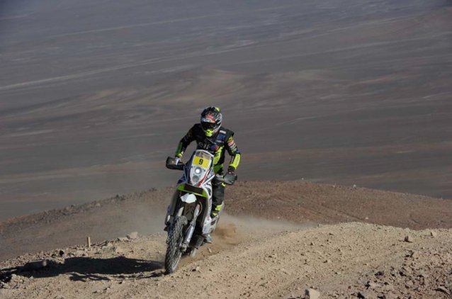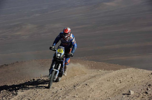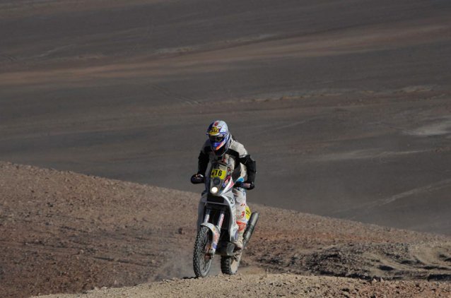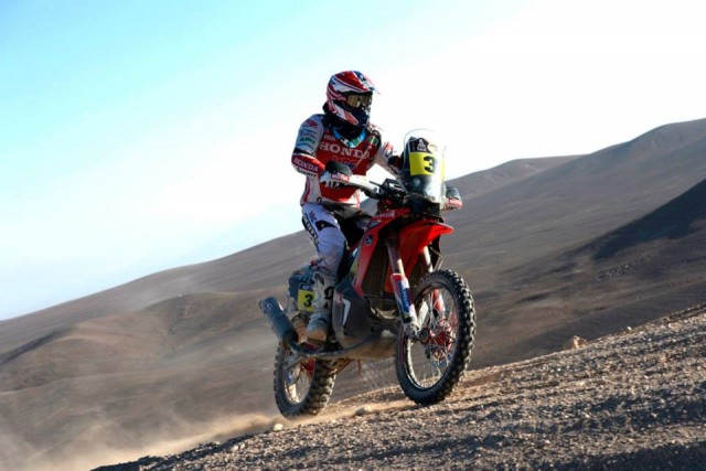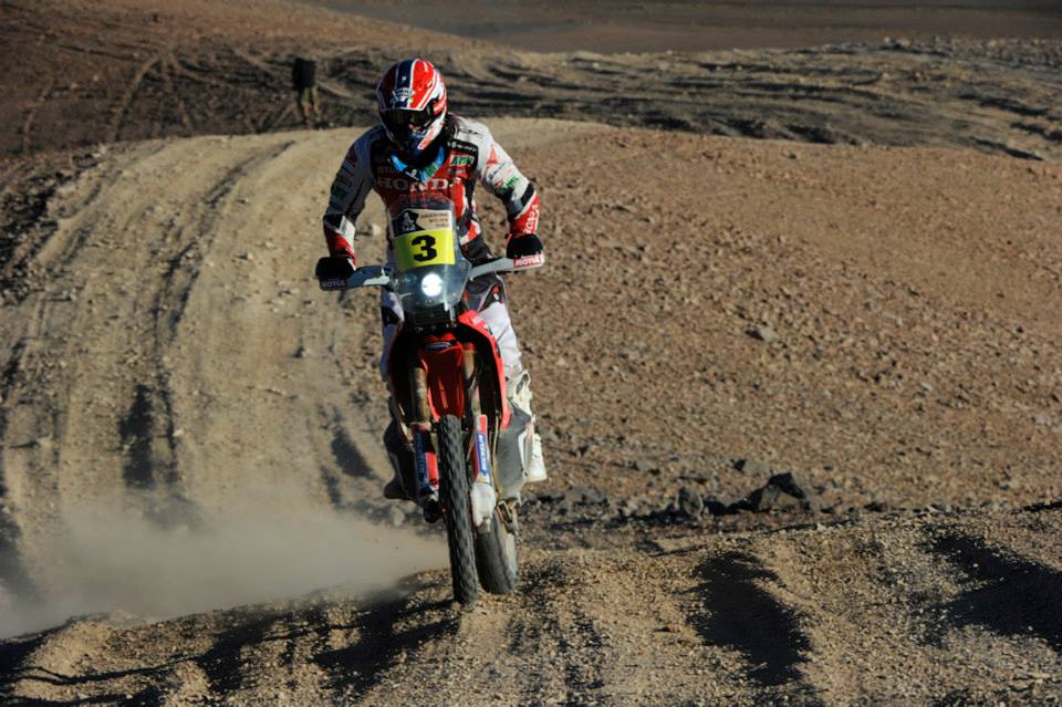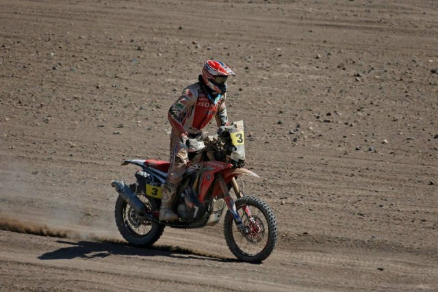 Από την άλλη ο Joan Barreda ξεκίνησε την ειδική χάνοντας κάποια δευτερόλεπτα στα πρώτα χιλιόμετρα στην έρημο Atacama αλλά η διαφορά μεγάλωσε και στο δεύτερο σημείο ανεφοδιασμού στο CP4 βρέθηκε να χάνει 7 ολόκληρα λεπτά από τον Coma. O λόγος που ο αναβάτης της Honda έχανε σταδιακά έδαφος ήταν μια μικρή πτώση που είχε στο 250ο χλμ με αποτέλεσμα να καταστραφεί  το συστήματα πλοήγησης του, σε βαθμό που η μόνη λύση ήταν να ακολουθήσει τα ίχνη των προπορευόμενων για να μπορεί να ελέγξει την κατεύθυνσή του.