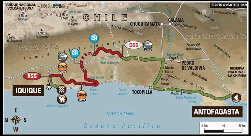 Η 5η μέρα του Rally Dakar συνέχισε το δρόμο του αφήνοντας πίσω το Copiapó, με προορισμό το Antofagasta στην ακτή του Ειρηνικού, μια διαδρομή από τις ποιο επικίνδυνες, αλλά και με τον ταχύτερο ρυθμό με δύσκολο έδαφος που άλλαζε συνεχώς.