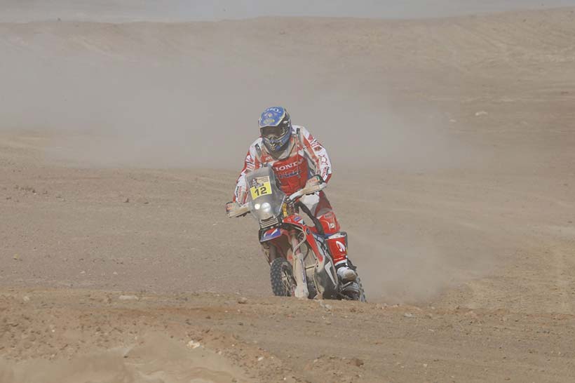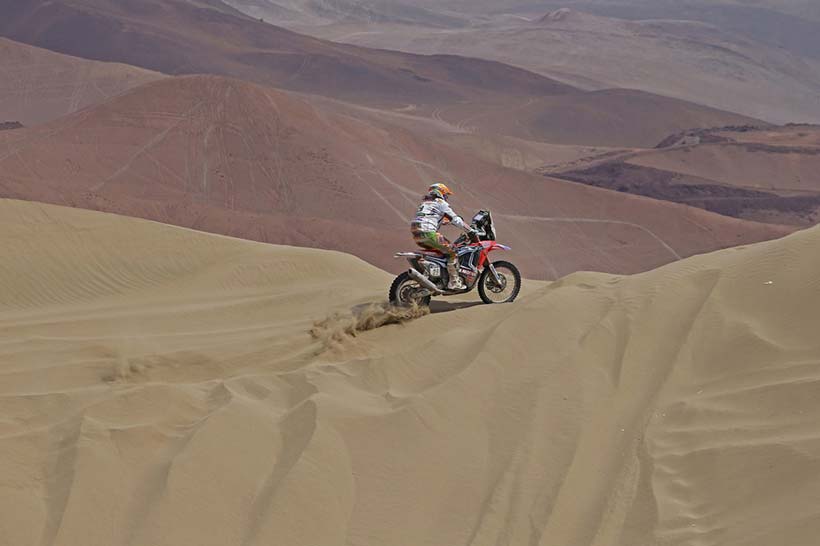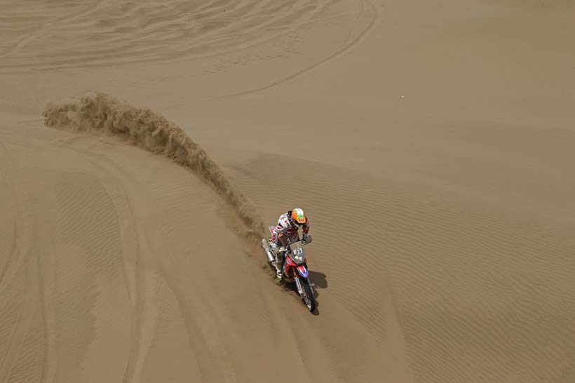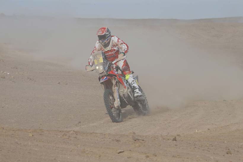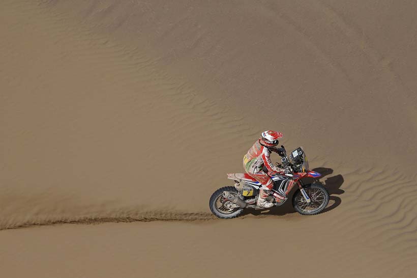 Νικητής της 9ης μέρας ο αναβάτης του HRC, ο Πορτογάλος Helder Rodrigues, όπου μετά την άσχημη ημέρα χθες που έχασε πάνω από 3 ώρες, σήμερα αντέδρασε σαν πρωταθλητής και τερμάτισε πρώτος στην Calama κάνοντας την δεύτερη νίκη του φέτος στο Dakar. Ο Rodrigues ξεκίνησε καλά και κατάφερε κατά τη διάρκεια της ειδικής διαδρομής των 450 χιλιομέτρων να ανοίξει πολύ την διαφορά του από τους αντιπάλους του τερματίζοντας σχεδόν τέσσερα λεπτά μπροστά από τον ομόσταυλό του, Paulo Gonçalves.