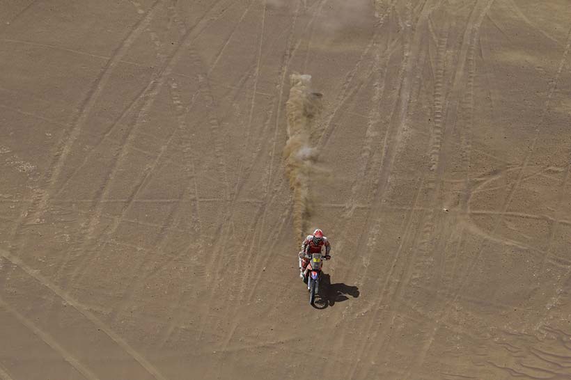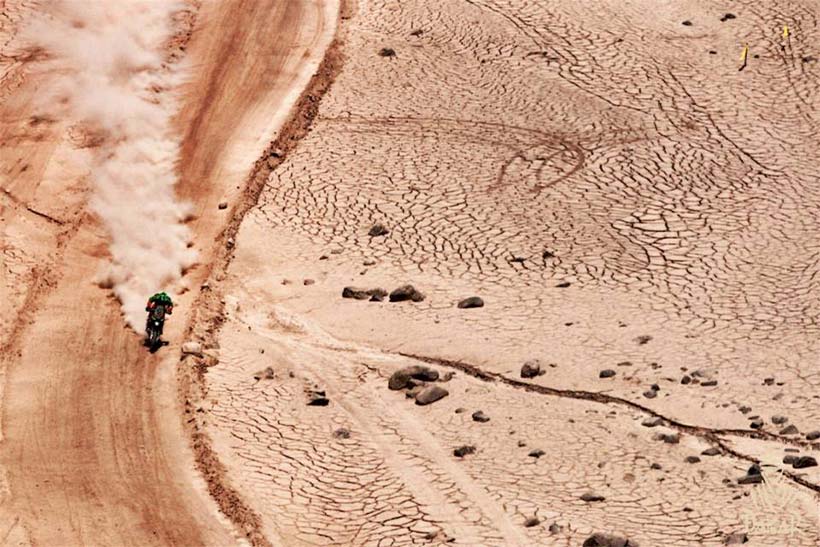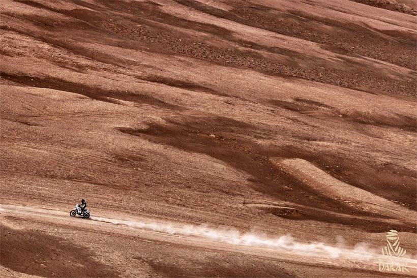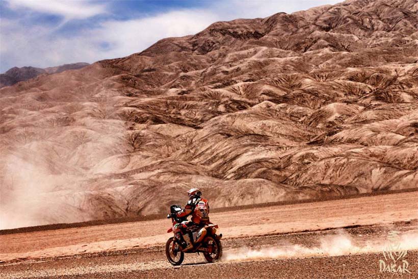 Η 9η μέρα τους Dakar είχε συνολικά 538 δύσκολα χιλιόμετρα από το Iquique προς την Calama. Μετά την χθεσινή καταστροφική ημέρα για πολλούς η σημερινή δύσκολη διαδρομή, πολύ δύσκολη στην πλοήγηση και πολλοί αναβάτες έχασαν την σωστή πορεία.