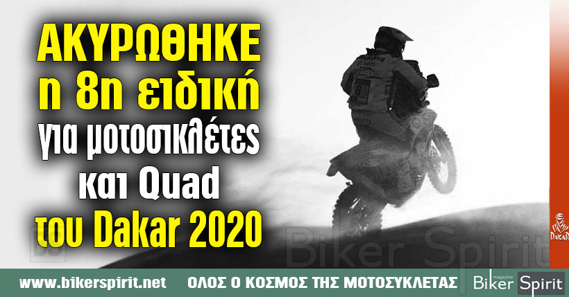 Ακυρώθηκε η 8η ειδική για μοτοσικλέτες και Quad στο Dakar 2020