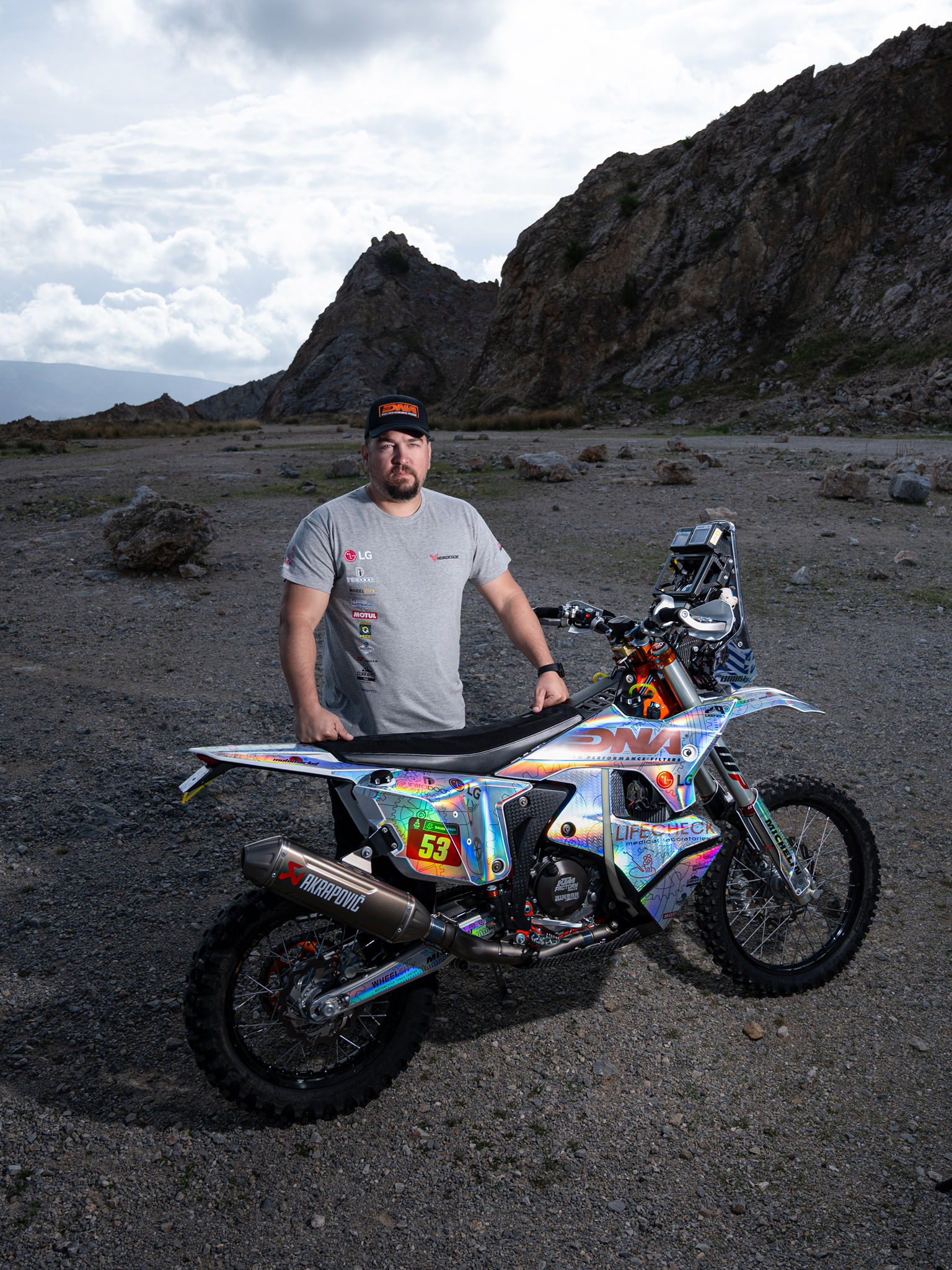 Να μην ξεχάσουμε πως και φέτος υπάρχει Ελληνική συμμέτοχη, αυτή του Βασίλη Μπούδρου με το #53, με μια KTM 450 Rally Factory Replica.