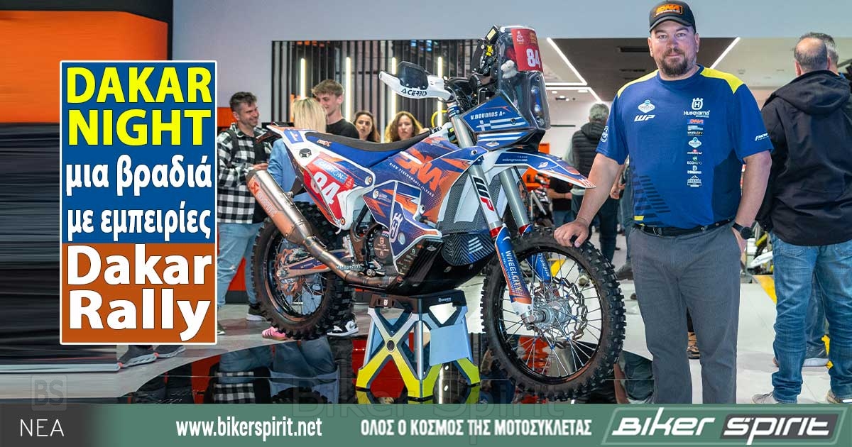 Η εκδήλωση Dakar Night σε συνδιοργάνωση της HUSQVARNA Greece και DNA Filters πραγματοποιήθηκε στις 27 Μαρτίου στις εγκαταστάσεις του Central Store της Πέτρος Πετρόπουλος ΑΕΒΕ με τη συμμετοχή κόσμου που γνωρίζει πολύ καλά τι σημαίνει περιπέτεια, rally, και off road αγώνες, αλλά και κόσμου που είχε την ευκαιρία για την πρώτη επαφή με τον κόσμο του Dakar Rally, μέσα από τα μάτια του Βασίλη Μπούδρου, τιμώμενου καλεσμένου της βραδιάς.