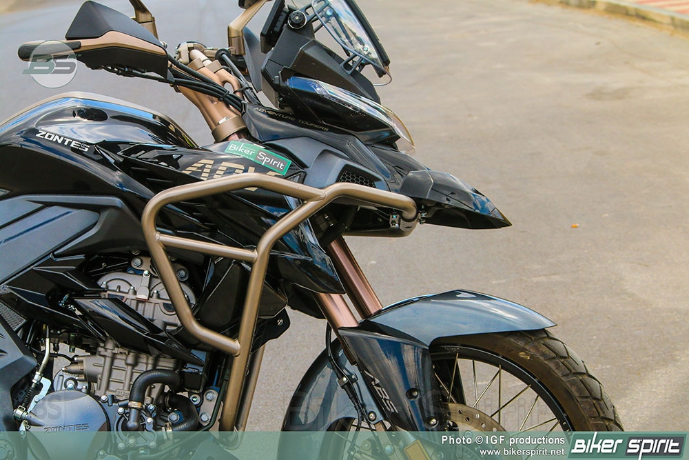 Για την προστασία των πλαϊνών πλαστικών του φέρινγκ και του κινητήρα υπάρχουν κάγκελα από σωλήνες μεγάλης διατομής, αλλά και προστατευτικές χούφτες για να μην σπάνε οι μανέτες σε περίπτωση πτώσης. Έχει επίσης ποδιά κάτω από τον κινητήρα για προστασία από πέτρες όταν οδηγείς στο χώμα.