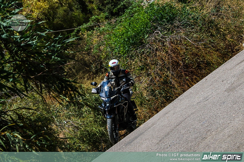 Στο χώμα η μοτοσυκλέτα δίνει και πάλι έναν καλό χαρακτήρα και ανταποκρίνεται σχεδόν παντού αψογά, με το μόνο ίσως μειονέκτημα ότι δεν μπορείς απενεργοποιήσεις το ABS στον πίσω τροχό, κυρίως σε σαθρό έδαφος, που με το ABS μεγαλώνει η απόσταση φρεναρίσματος.