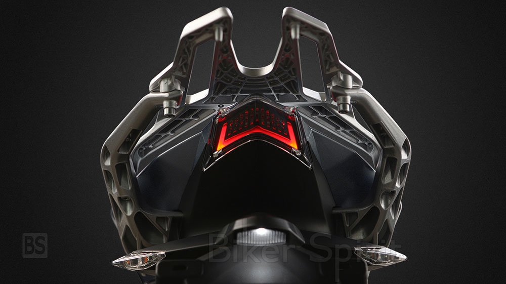 Το πίσω τμήμα του MONSTER ξεχωρίζει από τα υψηλής απόδοσης LED φώτα και από τις ενσωματωμένες χειρολαβές συνεπιβάτη με την αποσπώμενη σχάρα κράματος αλουμινίου.