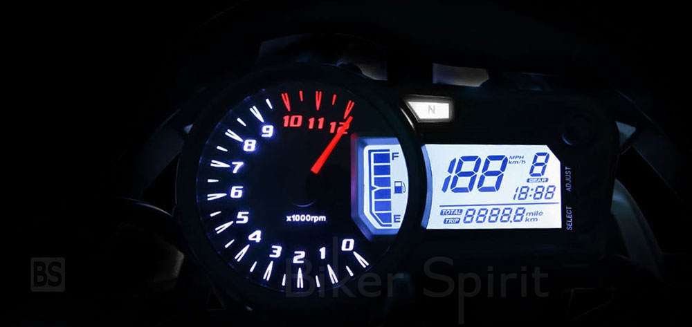 Το νέο MONSTER 125 διατηρεί τα πλούσια σε πληροφόρηση όργανα, με μεγάλο αναλογικό στροφόμετρο και LCD οθόνη που παρέχει πλήθος ευανάγνωστων πληροφοριών (Ένδειξη ταχύτητας | Ένδειξη Σχέσης Κιβωτίου| Στάθμη καυσίμου | Ολικό/μερικό χιλιομετρητή | Ρολόι).