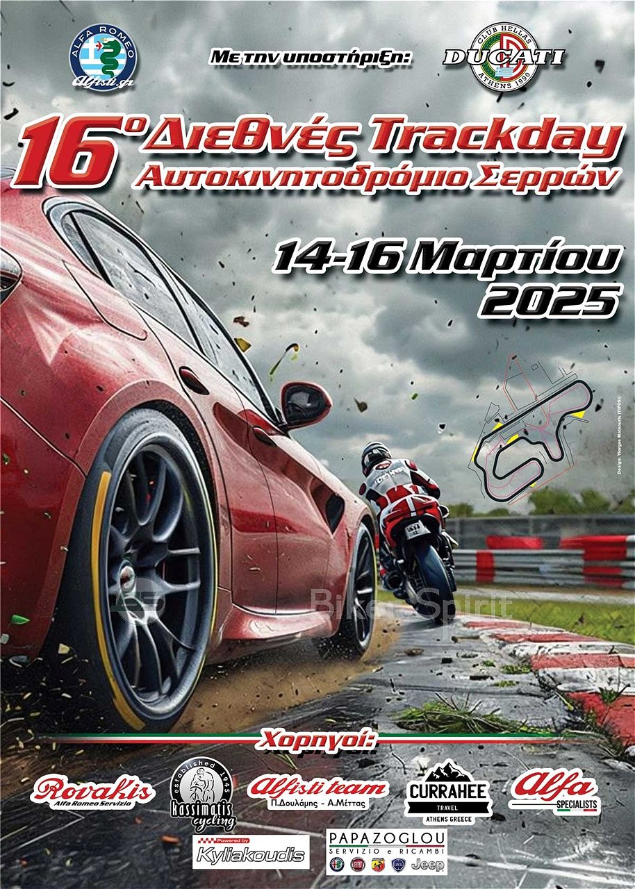 ΔΕΛΤΙO ΤΥΠΟΥ: 16o Διεθνές Trackday στο Αυτοκινητοδρόμιο Σερρών 14, 15 και 16 Μαρτίου 2024 με την υποστήρηξη της Alfa Romeo και της Ducati