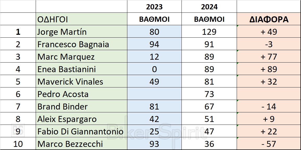 MotoGP 2024 Διαφορές του Top 10 της βαθμολογίας 2024 VS 2023 μετά από 5 Γύρους! 14 May 2024 BikerSpirit France, FrenchGP, FrenchGP2024, Grand Prix, Le Mans, MotoGP, MotoGP 2024, MotoGP2024 0 min read Ενώ ορισμένοι αναβάτες έχουν πολύ περισσότερους βαθμούς από το 2023, άλλοι είχαν μια δύσκολη αρχή για το 2024! Κάπως έτσι πάει η σεζόν μέχρι στιγμής για το Top 10 της βαθμολογίας μετά από 5 Γύρους! Randomizer Related Posts Ο Marc Márquez αποχαιρετά τη Red Bull “Ελπίζω οι δρόμοι μας να ξανασυναντηθούν” Massimo Rivola: “Ο Jorge Martin και ο Marco Bezzecchi είναι το καλύτερο δίδυμο στο MotoGP” Tardozzi σε Bagnaia: “Δεν μπορείς να είσαι πάντα ο κύριος, γιατί αυτοί οι τύποι σου κόβουν τον κώλο” – VIDEO Επίσημο: Στην Yamaha ο Augusto Fernández το 2025 ως αναβάτης δοκιμών MotoGP Maverick Viñales: “Αν με άκουγε η Yamaha, θα ήμουν Παγκόσμιος Πρωταθλητής MotoGP” Το MotoGP επιστρέφει στην Βραζιλία από το 2026 έως το 2030 Share this: Click to share on Facebook (Opens in new window) Facebook Click to share on X (Opens in new window) X Click to share on LinkedIn (Opens in new window) LinkedIn Click to print (Opens in new window) Print More Click to share on Reddit (Opens in new window) Reddit Click to share on Tumblr (Opens in new window) Tumblr Click to share on Pocket (Opens in new window) Pocket Click to share on Pinterest (Opens in new window) Pinterest Related