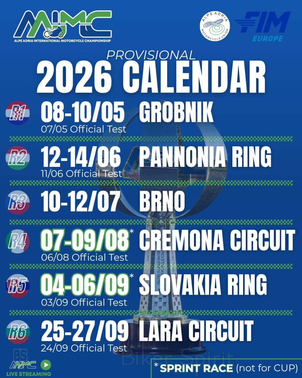 Διεθνές Πρωτάθλημα Alpe Adria – Προσωρινό Ημερολόγιο 2026