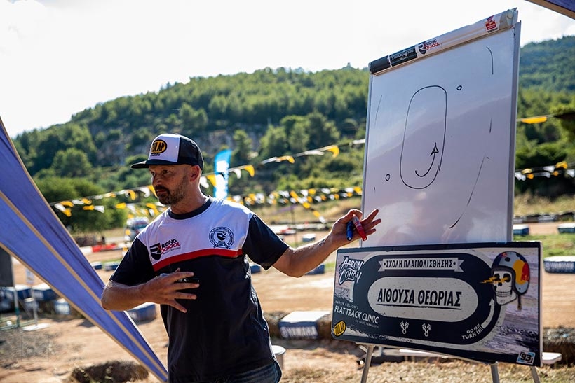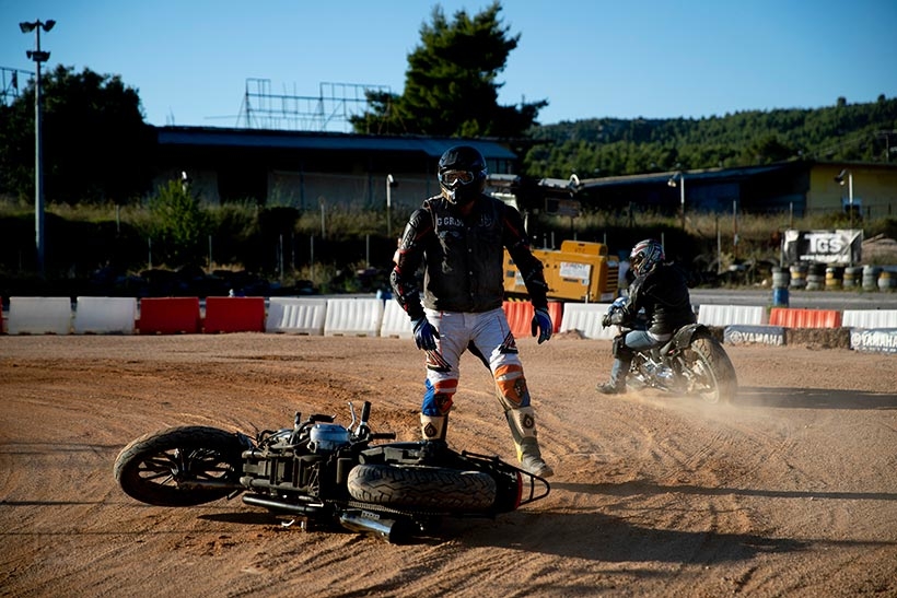 Τα πρώτα trailer φτάνουν στην πίστα γύρω στις 16:00 και αμέσως μετά το registration o Θανάσης Χούντρας του Riding School συγκεντρώνει τους συμμετέχοντες για το θεωρητικό session πριν περάσουν όλοι στο οβάλ για τους πρώτους αναγνωριστικούς γύρους, χωρισμένοι στις κατηγορίες Supermoto/Flattrack (racing bikes με τροχούς 17’ / 19’), Enduro/MX (racing bikes με τροχούς 18’ / 19’/ 21’ & ασφάλτινα ελαστικά), Trackers (αερόψυκτα μοτέρ, tracker tyres), Hooligans presented by Harley Davidson Athena (2κύλινδρα >600cc) αλλά και Ladies (με τα εκπαιδευτικά TTR125).