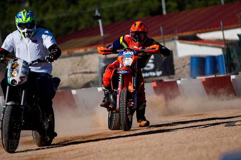 Στην κατηγορία Flat Track/Supermoto, παλιοί γνώριμοι motardεροί ξαναβρέθηκαν μπροστά από την ίδια καρώ σημαία με τους Καρακώστα, Μιμίκο και Βαγγελάκο να περνάνε μετά από σκληρές μάχες στον τελικό.