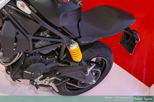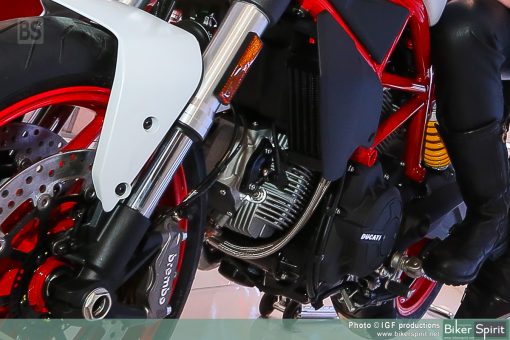 Ο δικύλινδρος κινητήρας στο Monster 797 διαθέτει ένα σώμα ψεκασμού με πεταλούδα 50 mm με δύο μπεκ, που εξασφαλίζει την σωστή απόδοση της δύναμης και τον ακριβή έλεγχο του μίγματος καυσίμου. Η εξάτμιση 2-σε-1 έχει σχεδιαστεί για να εξασφαλιστεί την βέλτιστη απόδοση αλλά και την σωστή προστασία από τη θερμότητα, τόσο για τον αναβάτη, οσο και για τον συνεπιβάτη.
