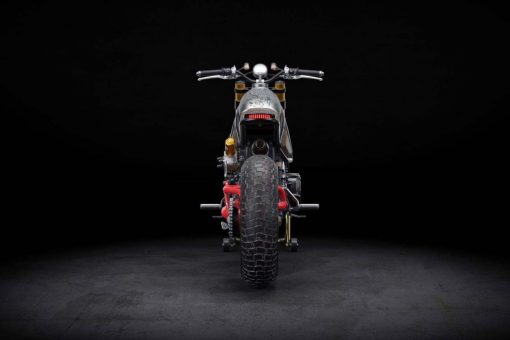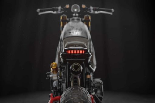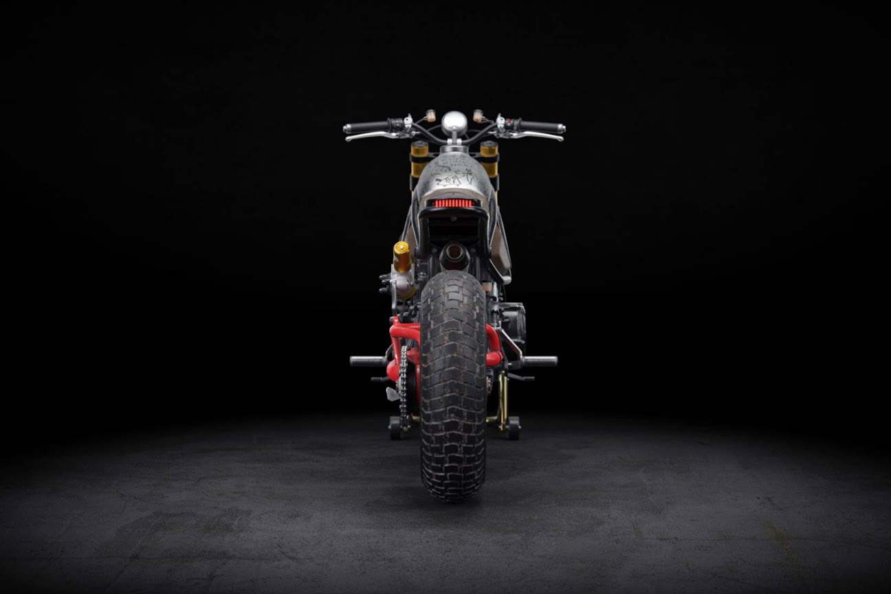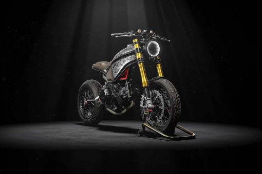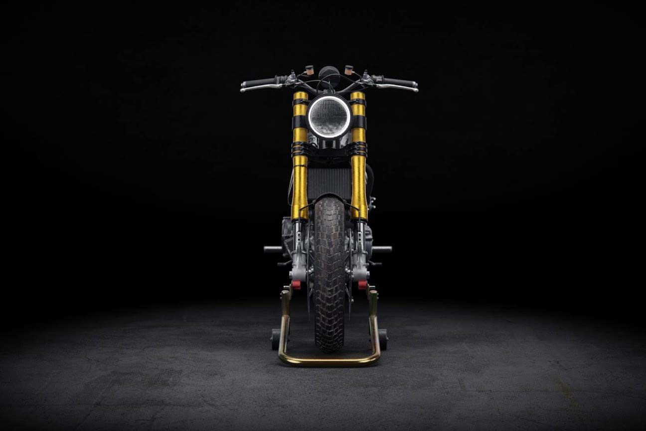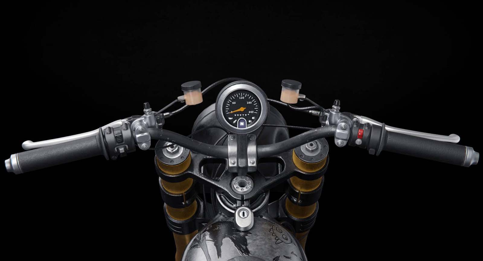 Για να δημιουργήσει το Naughty Quadro, ο Afanasyev πήρε τον κινητήρα του Panigale, Superquadro, και “έχτισε” γύρω του ένα ελκυστικό και μοντέρνο σώματος, θυμίζει πολύ το Scrambler. Το ψαλίδι του είναι απο Ducati Monster S2R 1000.