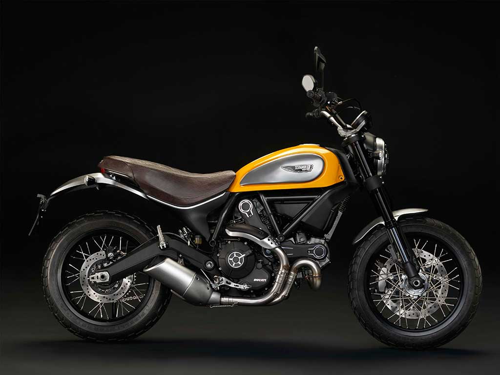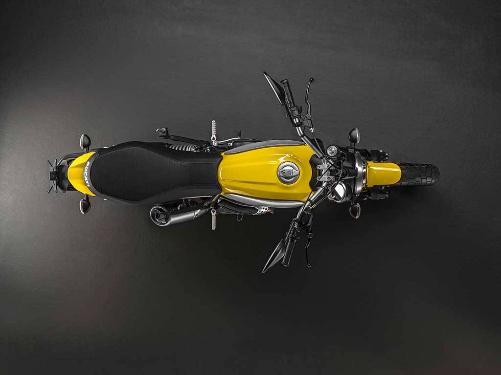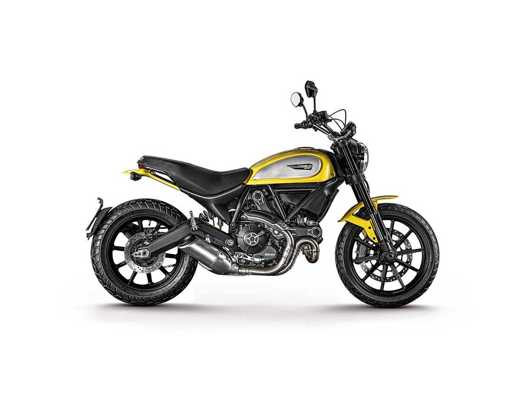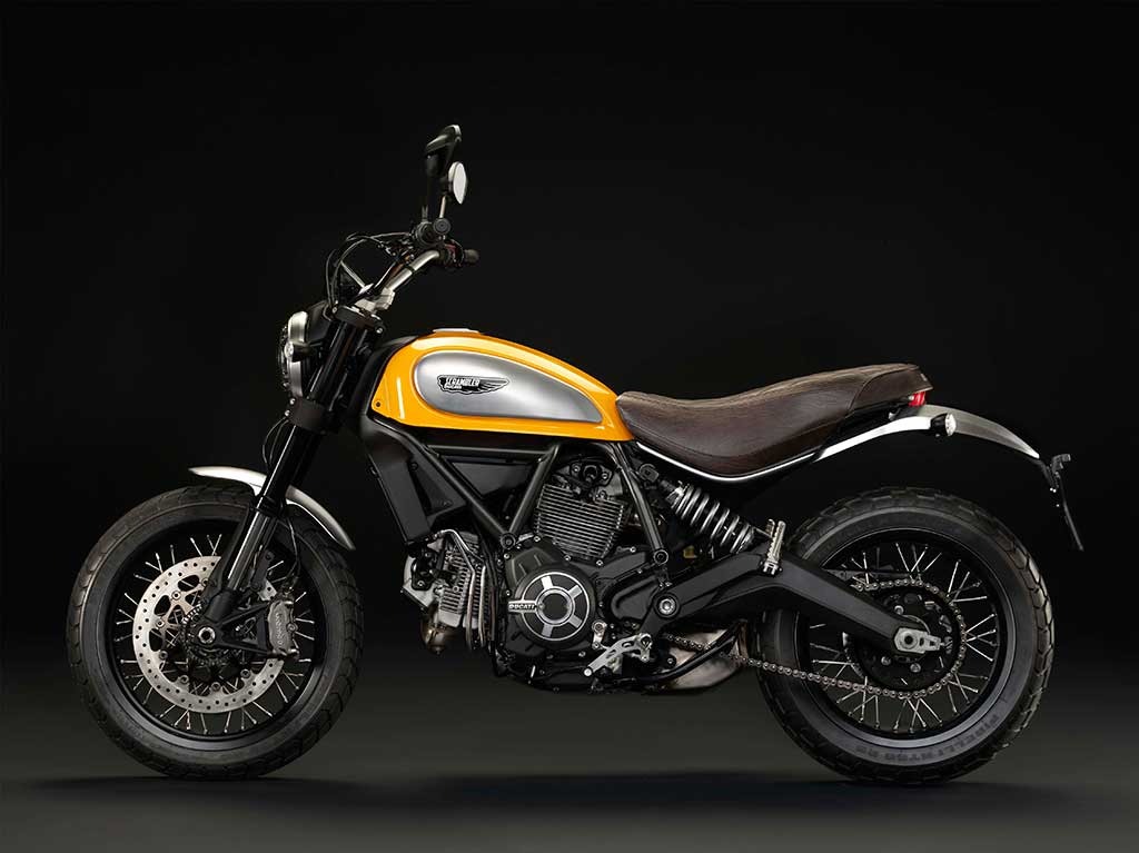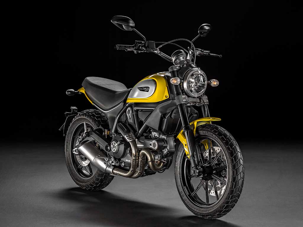 Η «Icon», σε κίτρινο και κόκκινο, η «Urban Enduro», η «Full Throttle» και η «Classic», κάθε μια με ιδιαίτερο στυλ, αλλά πάντα στο πνεύμα Scrambler.