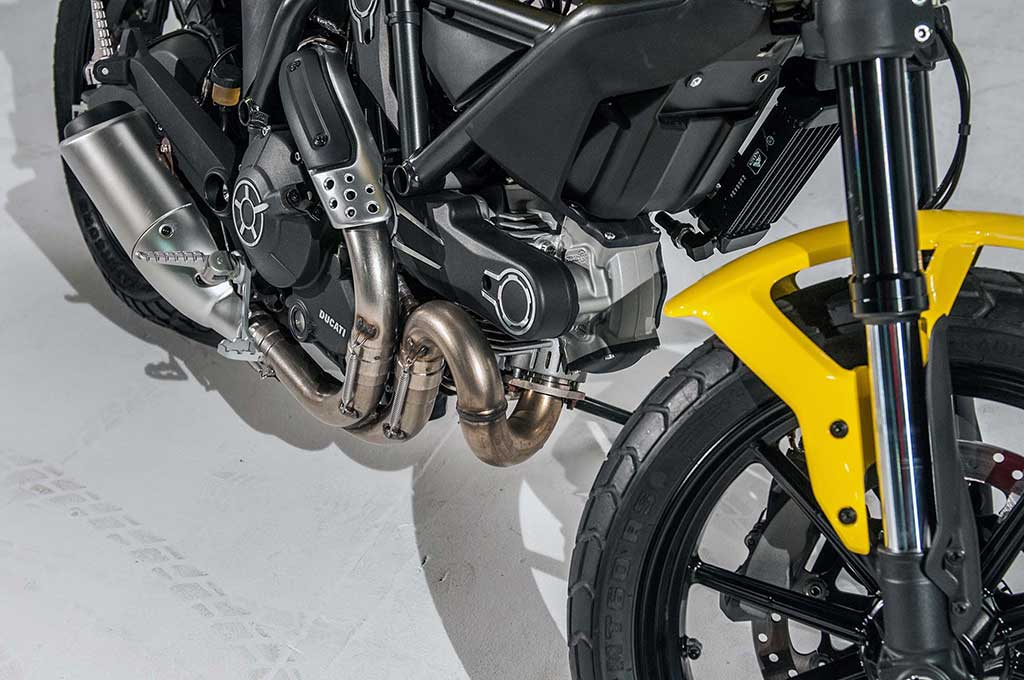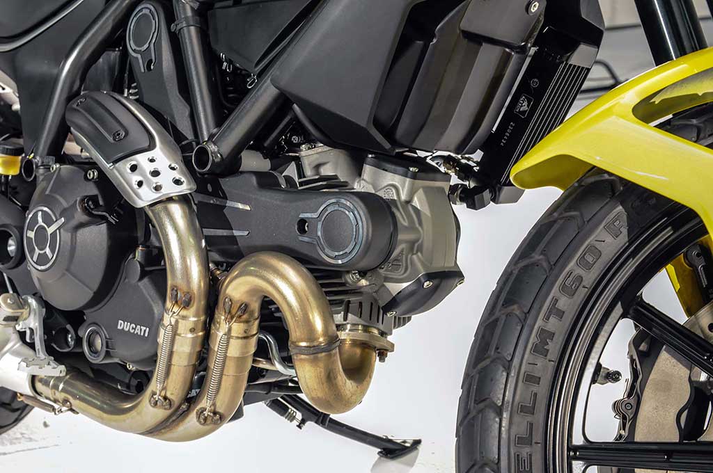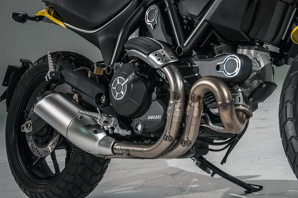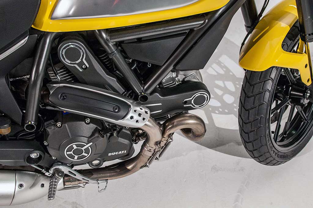 Το Scrambler διαθέτει τον αερόψυκτο κινητήρα L των 803cc που χρησιμοποιεί και το Monster 796, ο οποίος όμως έχει ανασχεδιαστεί για να προσφέρει ομαλή επιτάχυνση σε όλο το φάσμα των στροφών του και αποδίδει 75 ίππους.