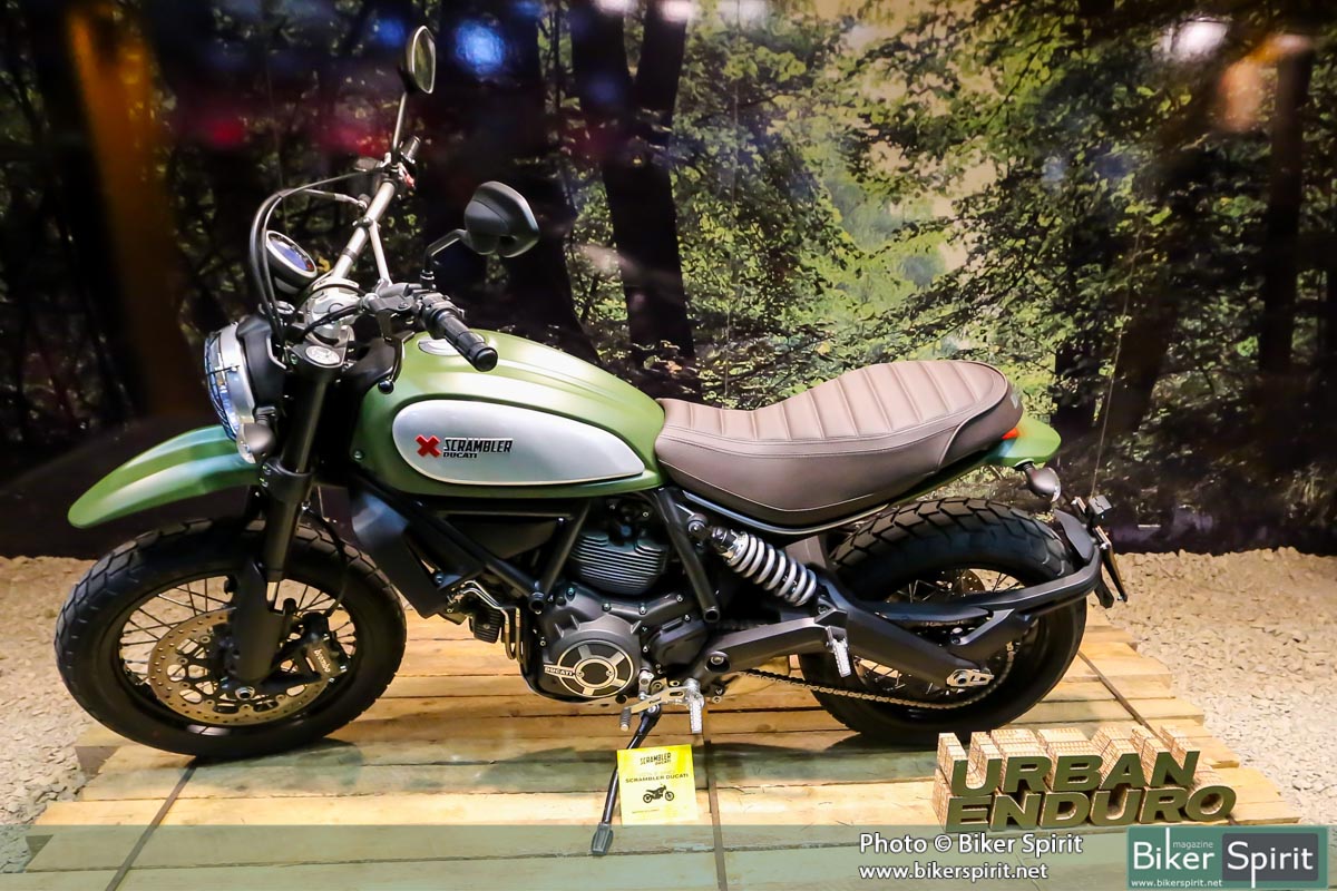 Το Scrambler Urban Enduro βγαίνει σε Wild Green (Άγριο Πράσινο) με μαύρο πλαίσιο και καφέ σέλα. Έχει ζάντες με ακτίνες, προστατευτική ποδιά κινητήρα και ψηλό πλαστικό φτερό. Εμπρός έχει προστατευτικά καλαμιών, προστατευτική σήτα στον προβολέα και μπάρα στο τιμόνι. Ειδικά φτιαγμένη σέλα με οριζόντιες ραφές και βεβαία διαφορετικά λογότυπα.