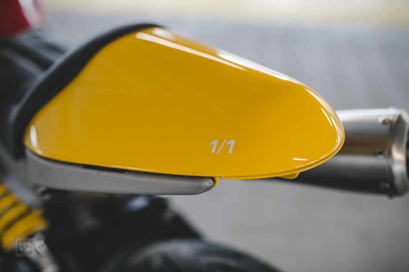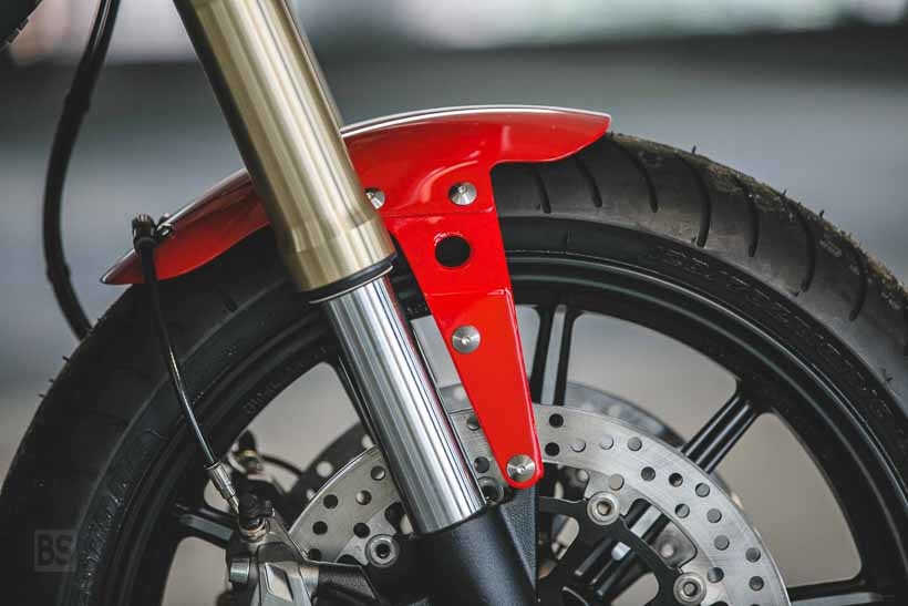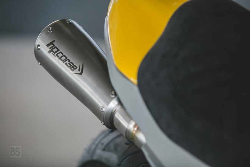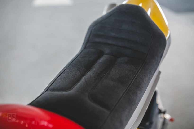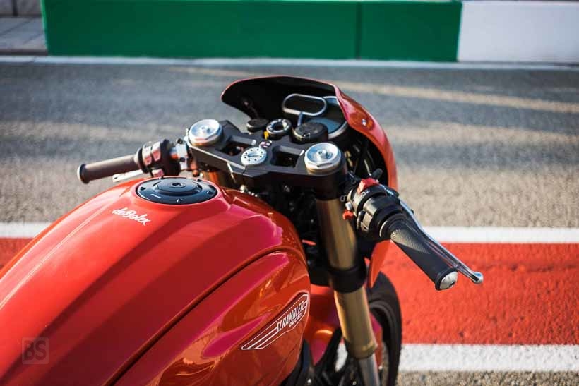 Αλλάξανε επίσης το τιμόνι, τοποθετώντας clips on για ένα πιο σπορ στήσιμο, διατηρώντας παράλληλα τα όργανα από το αρχικό μοντέλο. Τέλος, ο νέος χρωματισμός συνδυάζει τρία χρώματα, κόκκινο για το ντεπόζιτο και μπροστινό φτερό, γκρι για τη σέλα και ένα εντυπωσιακό κίτρινο για την ουρά, πετυχαίνοντας μια εντυπωσιακή αντίθεση.