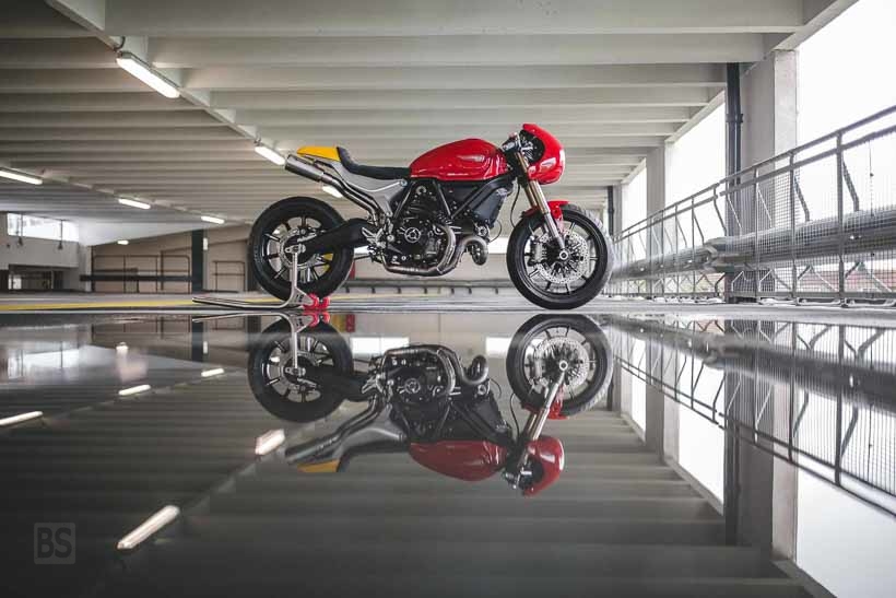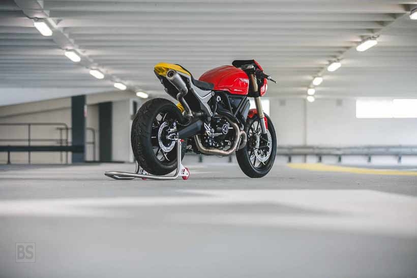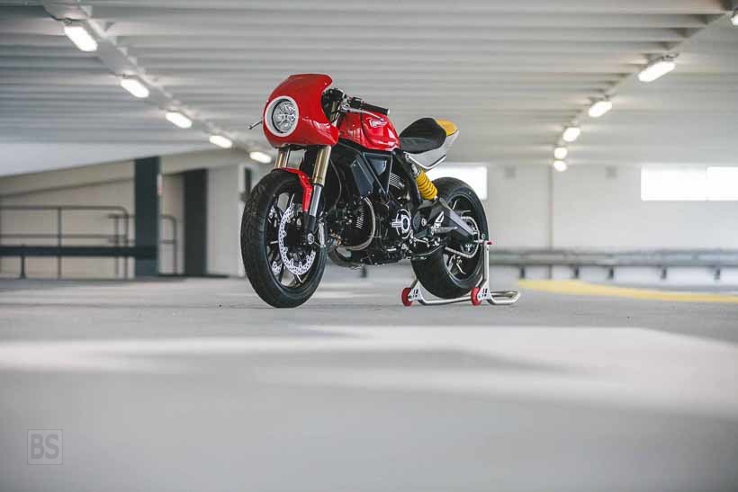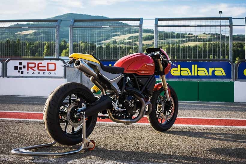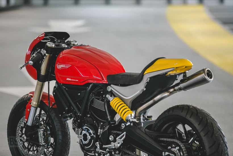 Ο στόχος ήταν να αλλάξουν τις εξωτερικές πτυχές, ώστε να μην αλλοιωθούν τα χαρακτηριστικά του Scrambler. Το πρώτο που έφτιαξαν ήταν ένα θολωτό κάλυμμα προβολέα, καθώς και ένα μικρό μπροστινό φτερό. Η σέλα και ουρά τροποποιήθηκαν, κάνοντας το μονόσελο.