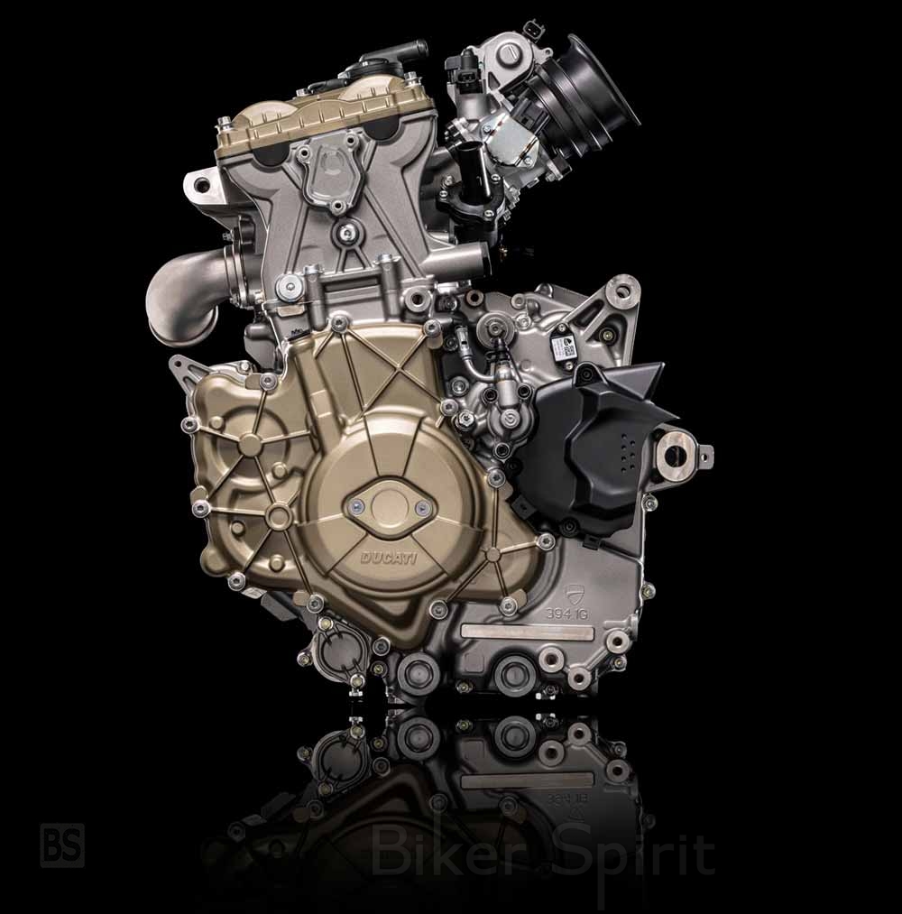 - Ο Superquadro Mono προέρχεται από τον δικύλινδρο κινητήρα της 1299 Panigale, από τον οποία κληρονομεί το έμβολο των 116 χιλ., τον θάλαμο καύσης, τις βαλβίδες εισαγωγής από τιτάνιο και τις αντίστοιχες εξαγωγής από χάλυβα και το δεσμοδρομικό σύστημα