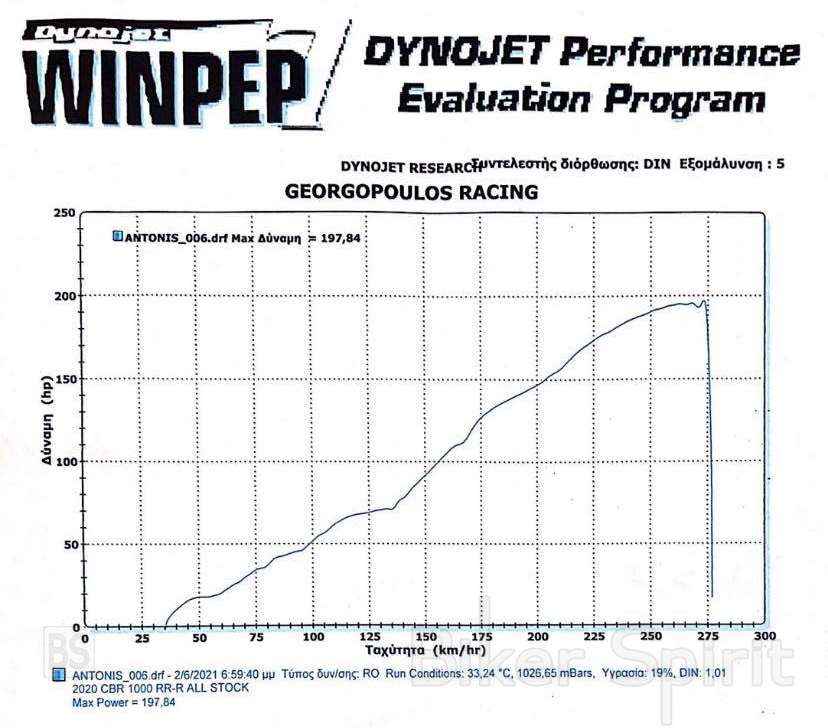 Η συγκεκριμένη μοτοσυκλέτα, ήταν ιδιώτη και χωρίς να έχει τελειώσει την διαδικασία του «στρωσίματος», οπότε δεν μπορέσαν να πιέσουν την μοτοσυκλέτα στο 100%, ωστόσο η μοτοσυκλέτα έβγαλε ανετά 197.84 άλογα στο τροχό, όπως μπορείτε να δείτε παρακάτω στο διάγραμμα!