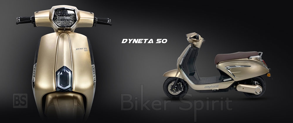 Όλα τα φωτιστικά σώματα είναι τεχνολογίας LED, με τον κομψό κεντρικό προβολέα να είναι τοποθετημένος μπροστά από το τιμόνι. Επιπλέον, στο μπροστινό μέρος της ποδιάς έχουν τοποθετηθεί τα φώτα ημέρας (DRL), προσθέτοντας μιας ιδιαίτερης αισθητικής πινελιά στο συνολικό σχεδιασμό του DYNETA 50.