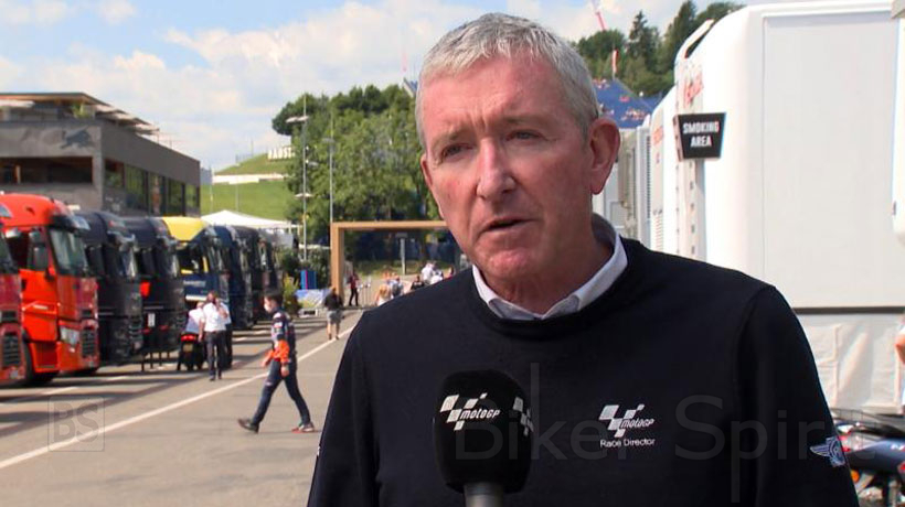 «Για πολλά χρόνια είχαμε μηνύματα ταμπλό όπου η Race Direction μπορεί να στέλνει μηνύματα σε αναβάτες. Σημαίες και πληροφορίες σχετικά με ποινές, τέτοια πράγματα. Κατά καιρούς περισσότερα σήματα. Όμως, μερικές καταστάσεις εμφανίστηκαν πρόσφατα, το ένα είναι στο GP της Καταλονίας, είχαμε κάτι που δεν είχε ξαναγίνει, όπου ο εξοπλισμός ενός αναβάτη, όπως η φόρμα του, δεν λειτουργούσε σωστά και έπρεπε να πούμε στον αναβάτη να το φτιάξει. Και δεν υπάρχει πραγματικά το κατάλληλο σήμα, έχουμε σήματα για μηχανική βλάβη στη μοτοσυκλέτα, αλλά αποφασίσαμε μετά από αυτό το περιστατικό ότι χρειαζόμασταν ένα συγκεκριμένο σήμα για τον εξοπλισμό του αναβάτη επειδή είναι διαφορετικό από ένα μηχανικό πρόβλημα, όπου αν μια μοτοσυκλέτα έχει διαρροή από λάδι ή νερό ή κάτι τέτοιο, είναι σημαντικό η μοτοσυκλέτα να βγει αμέσως από την πίστα ».