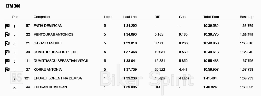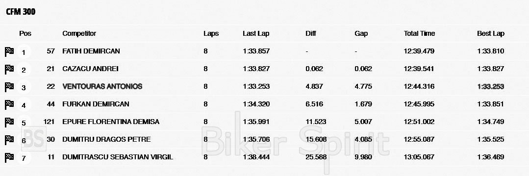 Ο μικρός Βεντούρας στη κατηγορία του CF MOTO 300 όπου και αγωνίζεται αν και κατάφερνε και προσπέρναγε τον Τούρκο οδηγό στη 5η και στη 10η στροφή, δεν κατάφερε να πάρει την πρωτιά στο βάθρο και τερμάτισε 2ος, με διαφορά μόλις 0.185 δευτερόλεπτα.