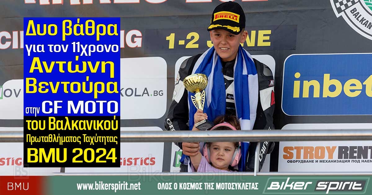 Δυο βάθρα ήταν ο απολογισμός για τον 11χρονο Αντώνη Βεντούρα που συμμετείχε στον 3ο και 4ο αγώνα στο Βαλκανικό Πρωτάθλημα Ταχύτητας BMU 2024 στις Σέρρες