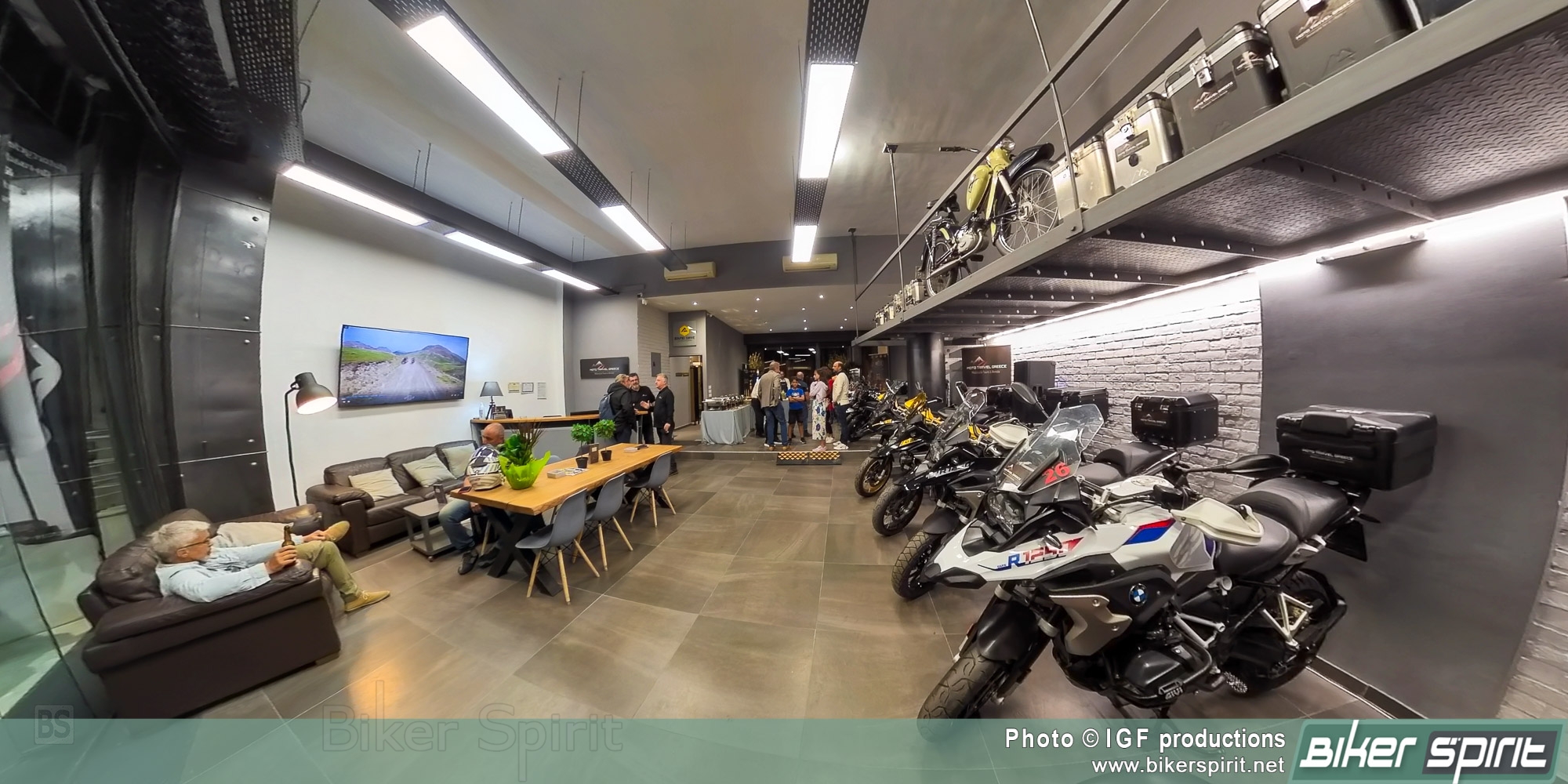 Ο νέος χώρος της Moto Travel Greece είναι ταυτόχρονα και το «στρατηγείο» της αφού εκτός από ότι εκεί βρίσκεται ένα μεγάλο μέρος του στόλου της είναι και ο χώρος ενημέρωσης των αναβατών, ο πλήρης ειδικός εξοπλισμός που μπορεί να ενοικιάσει κάθε αναβάτης που συμμετέχει στις εκδρομές, αλλά και τα αποδυτήρια τους, ένας πλήρης και άρτια εξοπλισμένος χώρος!