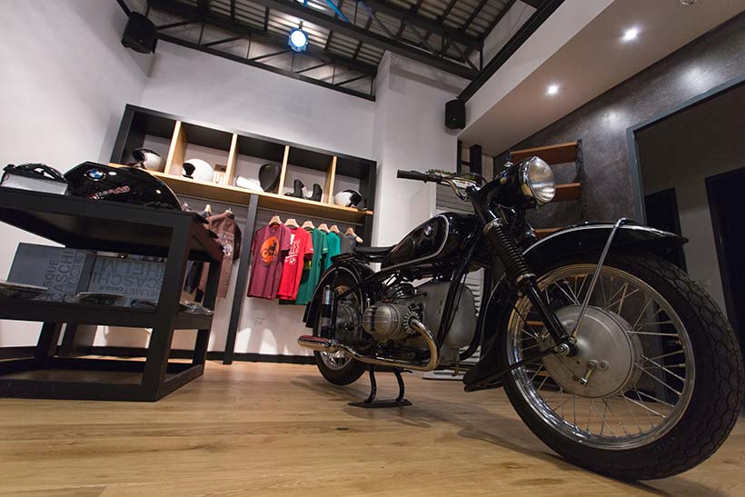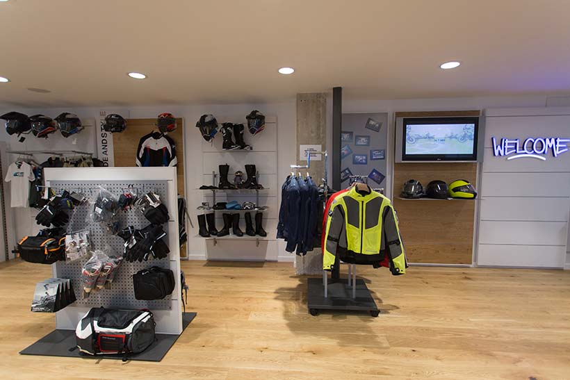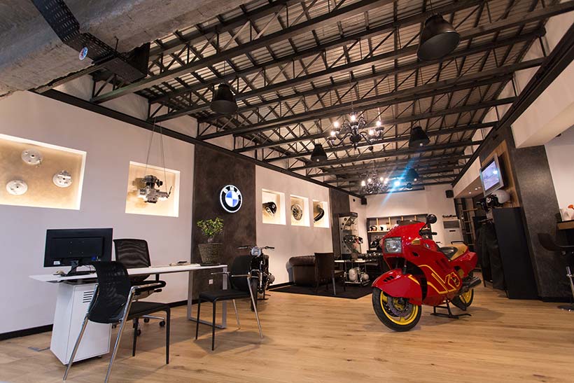 Σε έναν ειδικά διαμορφωμένο χώρο, βρίσκονται τα αξεσουάρ μοτοσικλέτας και ο εξοπλισμός του αναβάτη BMW Motorrad, ενώ σε διαφορετικό όροφο τα ανταλλακτικά και το εξουσιοδοτημένο συνεργείο της εταιρείας. Ένα ιδιαίτερο χρώμα στον χώρο δίνουν η ζεστή vintage γωνιά και το ανοιχτό μπαρ, κατάλληλα για στιγμές χαλάρωσης και συζήτησης. Με στόχο την διευκόλυνση των πελατών, η καινούργια κάθετη μονάδα βρίσκεται μόλις 100 μέτρα από το μετρό του Αγίου Δημητρίου απέναντι από το Athens Metro Mall.