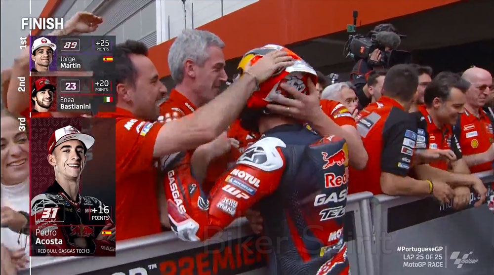 Marc Marquez : «Μπορείτε να δείτε τον Pedro ότι οδηγεί με αυτό το ένστικτο. Χωρίς φόβο. Απλώς πιέζει τη μοτοσυκλέτα και δεν έχει σημασία τι, και σήμερα έκανε έναν απίστευτο αγώνα και οδηγούσε με πολύ καλό τρόπο. Λοιπόν, ναι, εντυπωσιακός, ήταν απόλαυση να τον βλέπεις, αλλά είπα ήδη πριν από το Κατάρ, θα είναι ένα από τα ονόματα στο μέλλον, αλλά και στο παρόν».