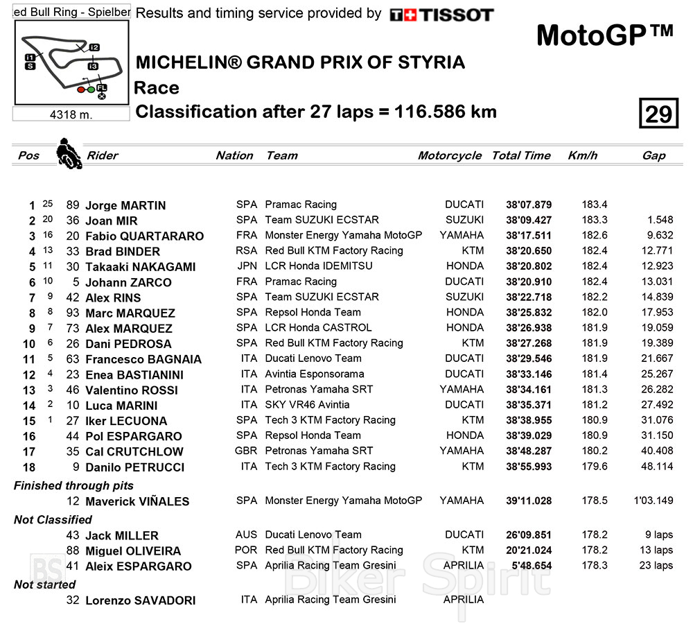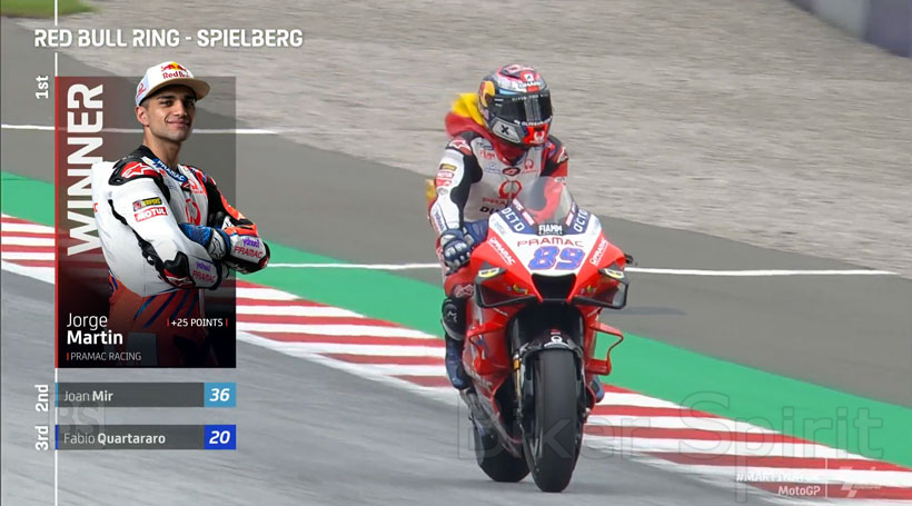 Αυτή είναι η έκτη επιτυχία της Ducati στο Red Bull Ring και η πρώτη νίκη στο MotoGP για την Pramac.
