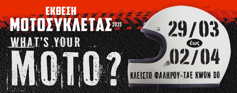 ΕΚΘΕΣΗ ΜΟΤΟΣΥΚΛΕΤΑΣ 2023 – WHAT’S YOUR MOTO? 29 Μαρτίου έως και τις 2 Απριλίου, στο Εκθεσιακό Κέντρο – Κλειστό Γήπεδο Π. Φαλήρου (πρώην TAE KWON DO)