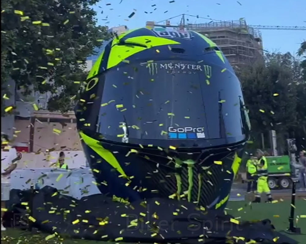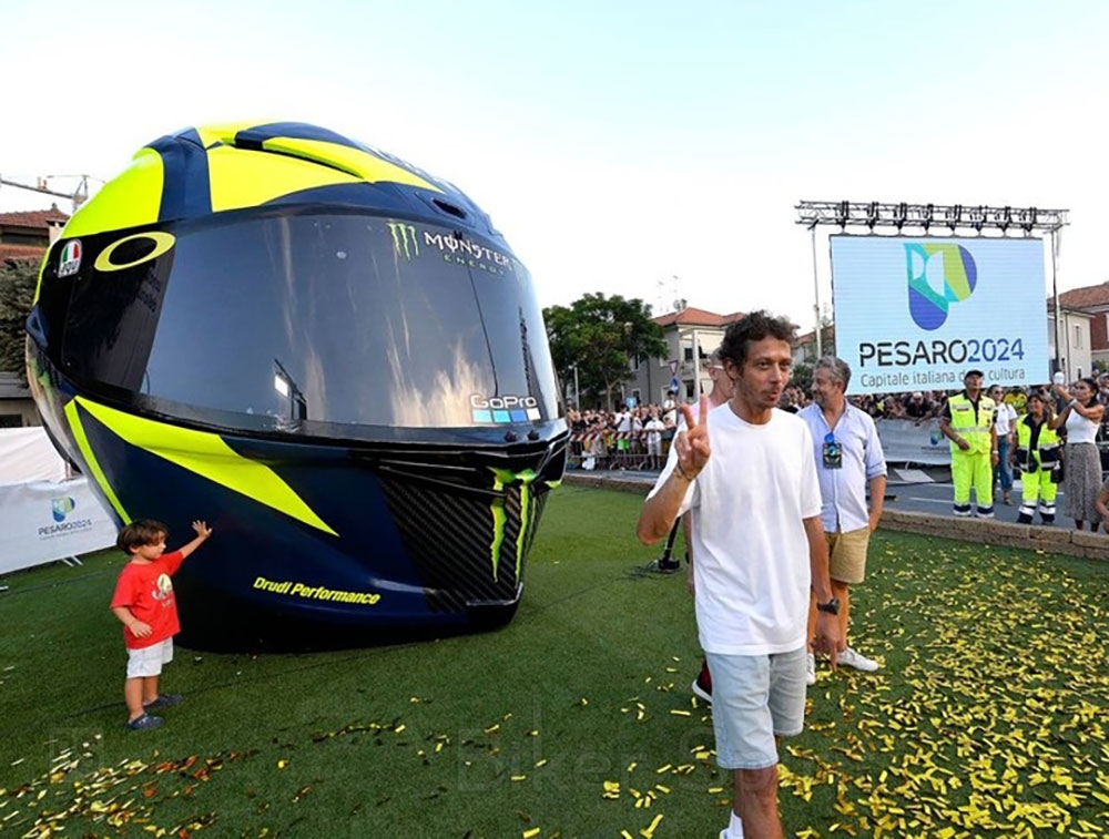 Το βράδυ της Δευτέρας στην «Piazzale D’Annunizio» του Pesaro, ο Valentino Rossi και ο δήμαρχος Matteo Ricci αποκάλυψαν τη νέα εγκατάσταση προς τιμήν του εννέα φορές παγκόσμιου πρωταθλητή με τίτλο «Un Casco da Leggenda», ένα θρυλικό κράνος.