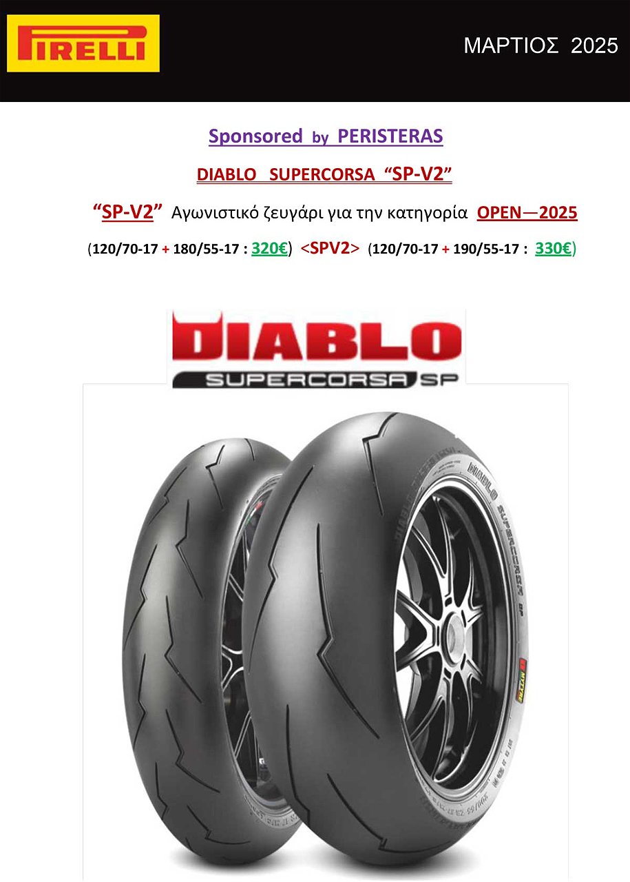 Το ελαστικό για το 2025 θα είναι το PIRELLI DIABLO SUPERCORSA SP-V2, με τιμές ανά αγωνιστικό ζεύγος στα: