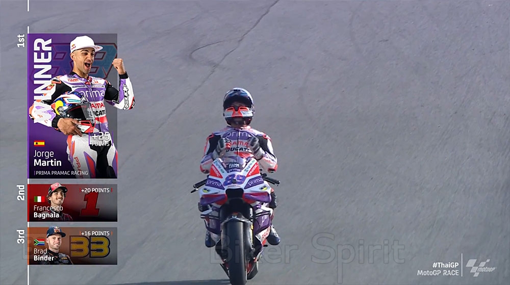 Οι θεατές παρακολούθησαν ένα συναρπαστικό αγώνα MotoGP στην πίστα αυτό το Σαββατοκύριακο και σίγουρα το ένιωσαν! Μετά από τις πρώτες δοκιμές, όπου οι αναβάτες βελτίωσαν τις ρυθμίσεις των μοτοσυκλετών τους, στις κατατακτήριες οι οκτώ ταχύτεροι αναβάτες βελτίωσαν το χρόνο της pole position από το 2022. Επιπλέον, ο Jorge Martin (Prima Pramac Racing) σημείωσε νέο ρεκόρ πίστας όλων των εποχών με χρόνο 1’29”287. Αυτό σήμαινε ότι το επίπεδο επιδόσεων ήταν απίστευτα υψηλό και έδειξε ξεκάθαρα ότι η συνεργασία μεταξύ ελαστικών και μοτοσυκλετών ήταν τέλεια αυτό το Σαββατοκύριακο στην Ταϊλάνδη.