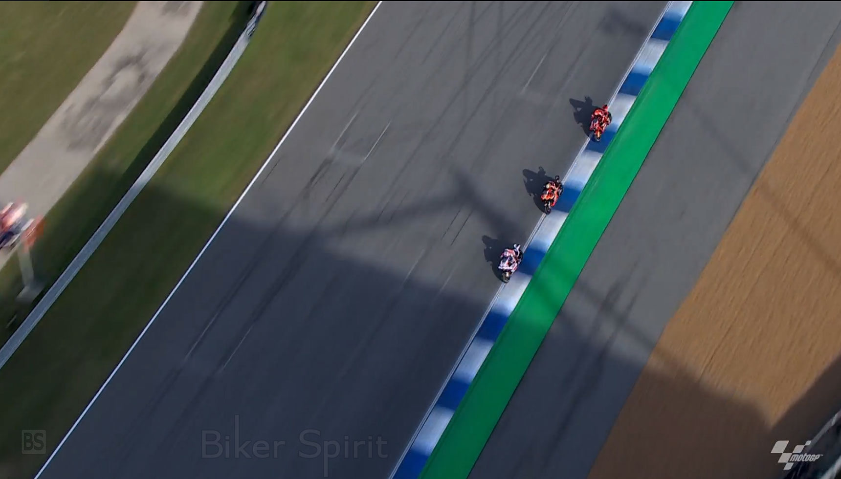 Οι τρεις αναβάτες έδωσαν πολύ υψηλό ρυθμό και μπόρεσαν να επιτεθούν, εκμεταλλεύομενοι το 100% των δυνατοτήτων των μοτοσυκλετών τους, χωρίς να ανησυχούν για τα ελαστικά τους. Οι χρόνοι αγώνα ήταν επίσης σταθεροί, ανεξάρτητα από την περίοδο και στο τέλος οι τρεις αναβάτες πέρασαν τη γραμμή τερματισμού με λιγότερο από τρία δέκατα του δευτερολέπτου να τους χωρίζουν!
