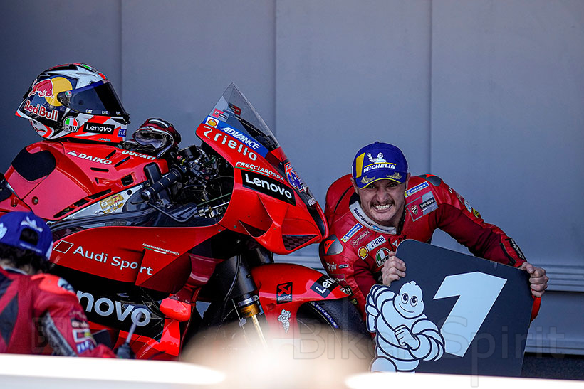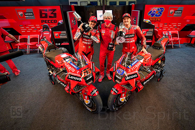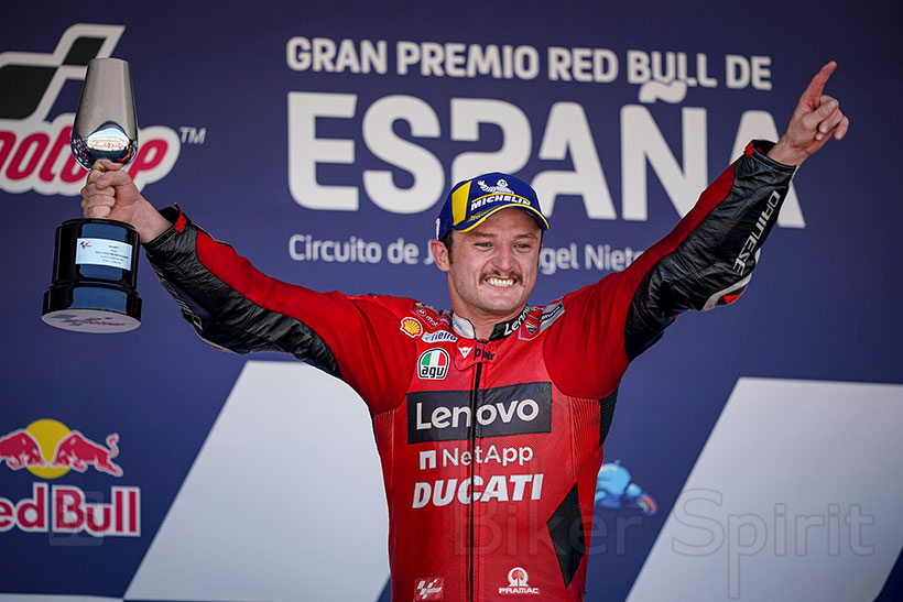 Με το μέγιστο των 45 βαθμών έφυγε από την Ισπανία και την πίστα της Χερέθ, νωρίτερα σήμερα το απόγευμα, η Ducati Lenovo Team. Ο Αυστραλός Jack Miller και ο Ιταλός Francesco–Pecco–Bagnaia, κατέκτησαν την 1η και 2η θέση αντίστοιχα στο Grand Prix της Ισπανίας, μετά από παλικαρίσιο αγώνα με τις δύο Ducati Desmosedici. Μάλιστα, για τον μεν Αυστραλό αυτή ήταν η μόλις δεύτερη νίκη στην καριέρα του ενώ για τον δε Ιταλό, το αποτέλεσμα αυτό τον φέρνει στην πρωτοπορία του πρωταθλήματος αναβατών, μετά από τέσσερις αγώνες.