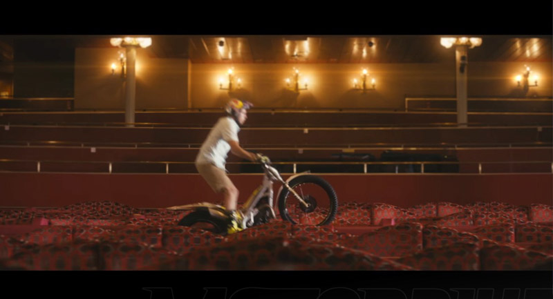 Παρόλα αυτά στο καλογυρισμένο βίντεο, μπορούμε να απολαύσουμε τα εντυπωσιακά κόλπα του πολυπρωταθλητή, Adam Raga. Ο 34χρονος Ισπανός έχει κατακτήσει στην καριέρα του 6 Παγκόσμια Πρωταθλήματα, 7 νίκες στο Trial των Εθνών και 8 Ισπανικά Πρωταθλήματα.