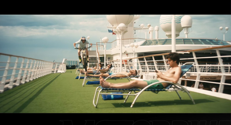 Ο Adam Raga πάνω στην TRS One 300 του, κάνει μια γρήγορη εξερεύνηση στις καμπίνες, στους διαδρόμους, σε αίθουσες, πισίνες, γυμναστήρια και άλλα μέρη, στο τεράστιο κρουαζιερόπλοιο που διαθέτει 12 καταστρώματα και μπορεί να φιλοξενήσει περισσότερους από 2.700 επιβάτες.